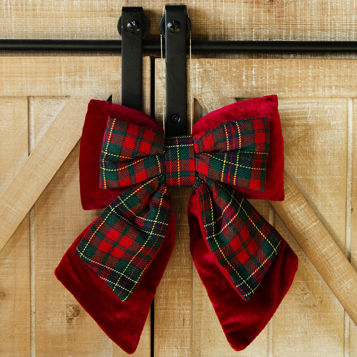 Nom du produit : Nœud en velours écossais rouge pour intérieur 21 × 23 cm