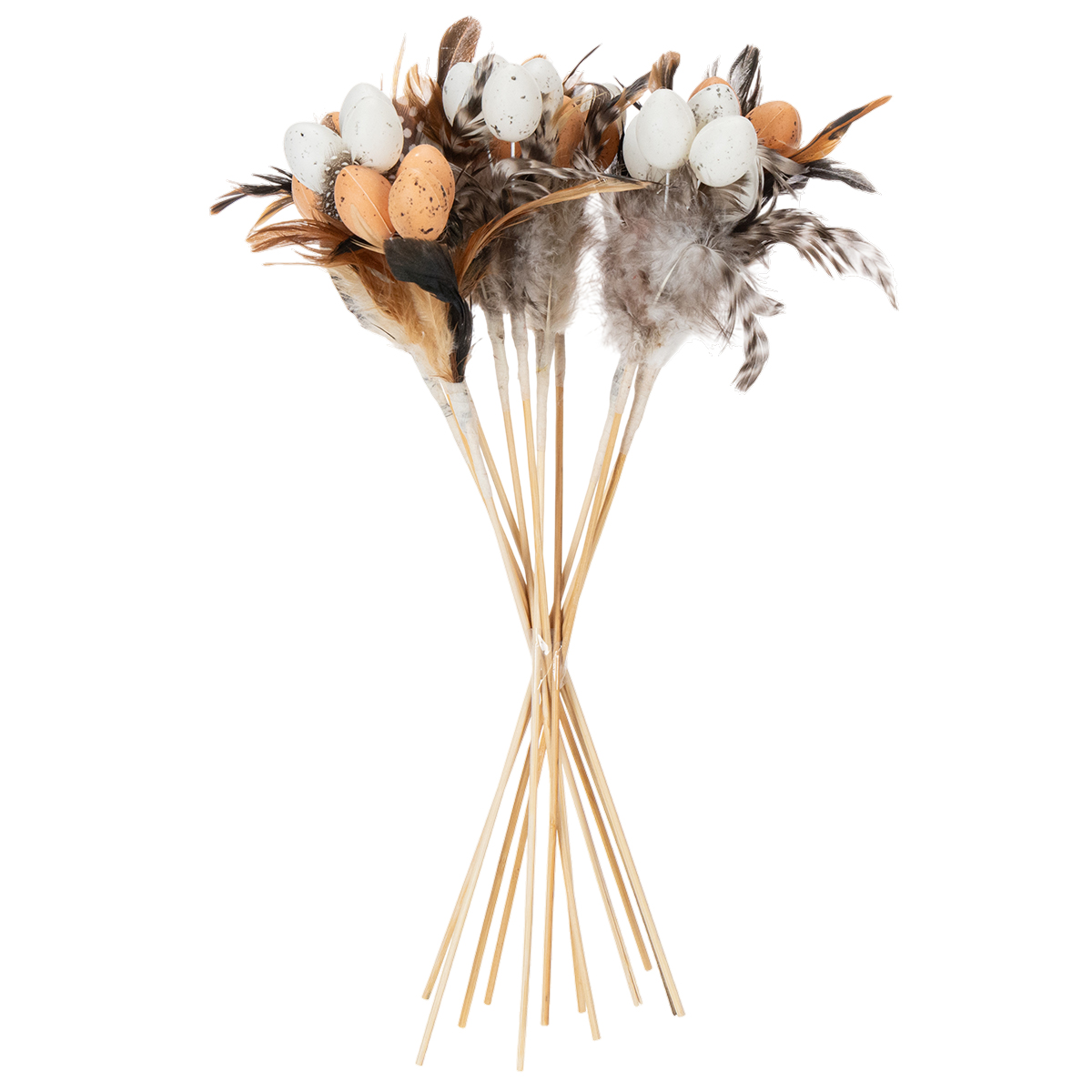 Œufs de caille artificiels, plumes décoratives sur bâtonnet, 36 cm, lot de 12