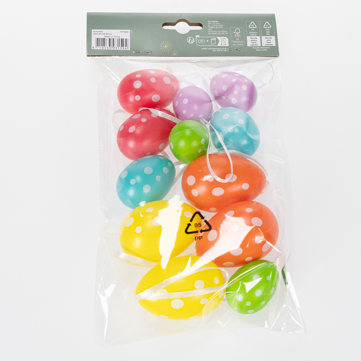 Œufs de Pâques à suspendre, couleurs assorties, 6 cm, lot de 12