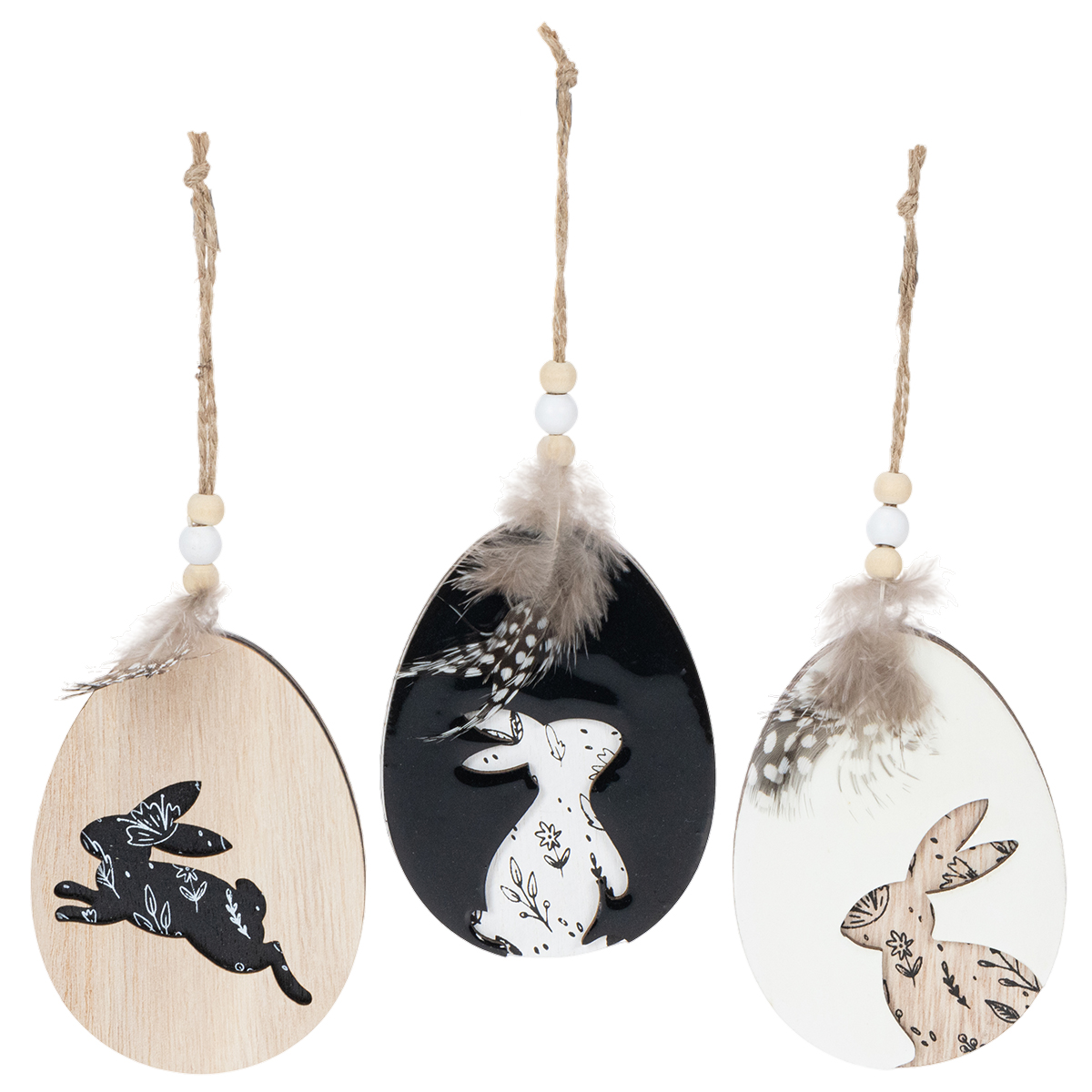 Œufs de Pâques en bois à suspendre, blancs et noirs, 10 cm, lot de 6