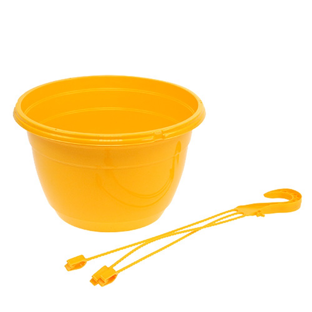 Le panier suspendu jaune en plastique léger mais résistant a un diamètre extérieur d'environ 25 centimètres, un diamètre intérieur d'environ 23 centimètres et un diamètre de base d'environ 15 centimètres. Le pot de fleur lui-même mesure environ 15,5 centimètres de haut et sa longueur totale est d'environ 50 centimètres. Veuillez noter que le panier suspendu est livré sans soucoupe et ne convient donc qu'à une utilisation en extérieur.