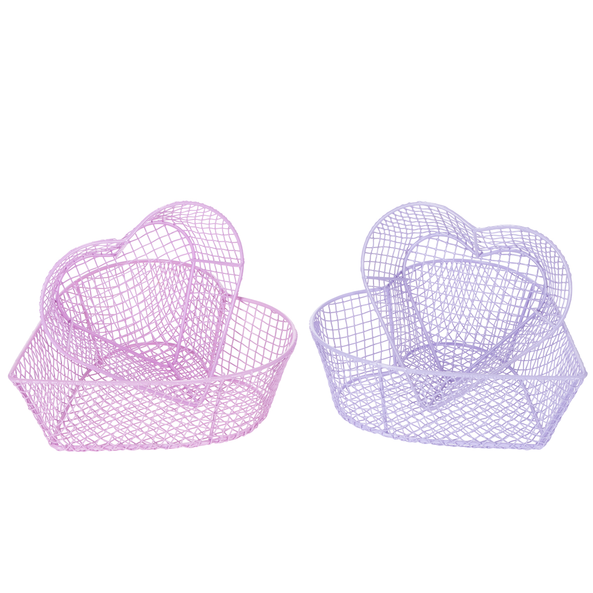 Créez une ambiance romantique et ordonnée avec ces ravissants paniers en fil de fer en forme de cœur. Utilisés comme élément décoratif sur la table, pour ranger de petits objets ou comme élégant coffret cadeau, ces paniers métalliques en forme de cœur apportent amour et harmonie à votre intérieur. Fabriqués en métal robuste, ils se déclinent dans de douces nuances de rose et de violet. Parfaits pour le salon ou les espaces extérieurs abrités, ils sont le choix idéal pour une décoration de table romantique lors d'occasions spéciales telles que les mariages, la Saint-Valentin ou les anniversaires.