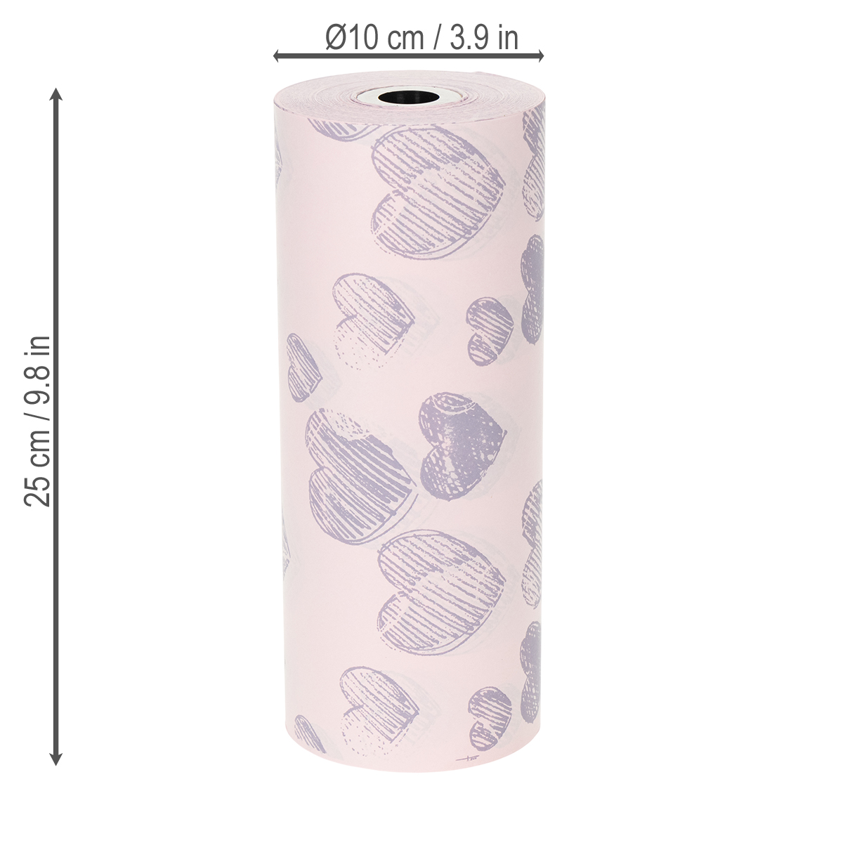 Papier d'emballage fleuri à motifs de cœurs pour créations florales décoratives, 25 cm x 25 m