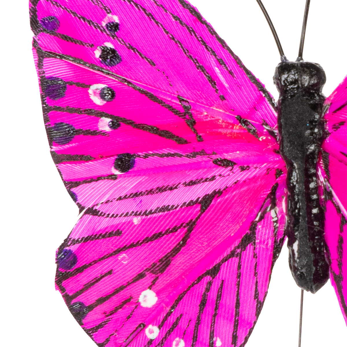Cet ensemble offre une palette de couleurs particulièrement variée. Du crème délicat à l'orange vif en passant par le rose éclatant, chaque couleur apporte une touche d'originalité. La matière, de véritables plumes, confère aux papillons un aspect naturel. Le fil métallique fixé à chaque papillon mesure 24 cm de hauteur, idéal pour les intégrer à des compositions florales ou les disposer comme décorations flottantes sur une table.