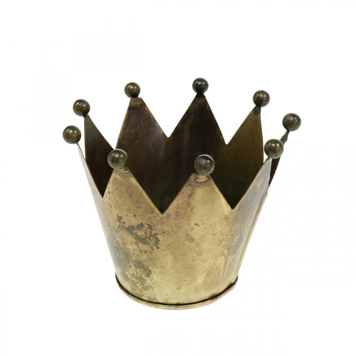 Nom du produit : Photophore couronne métal laiton aspect vieilli Ø10cm H8cm