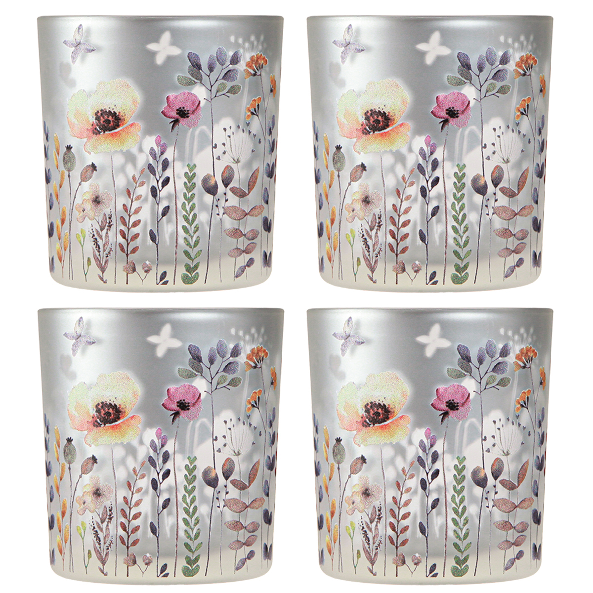 Photophore en verre coquelicot papillon coloré 8cm 4 pcs