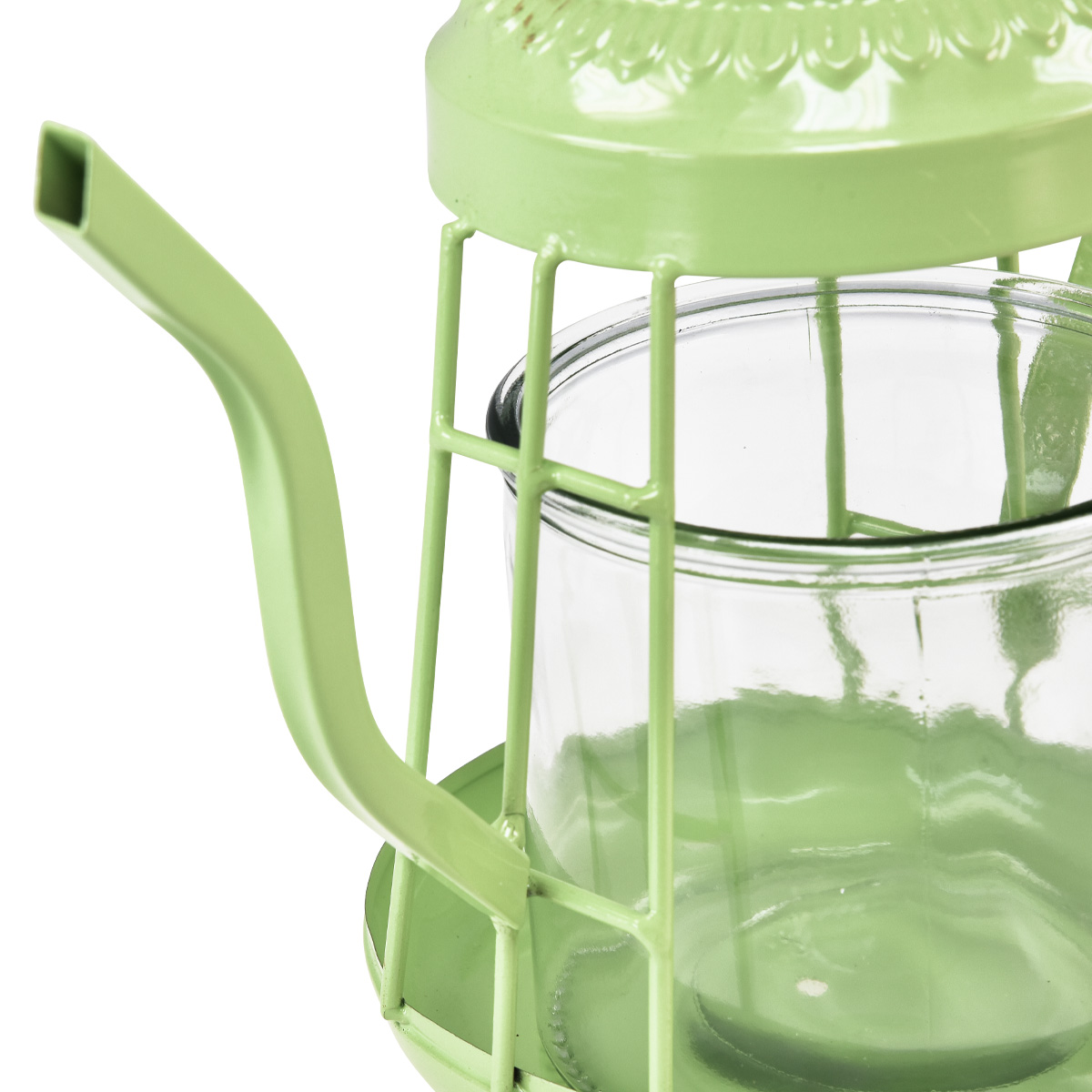 Nom du produit : Photophore verre lanterne théière vert Ø15cm H26cm