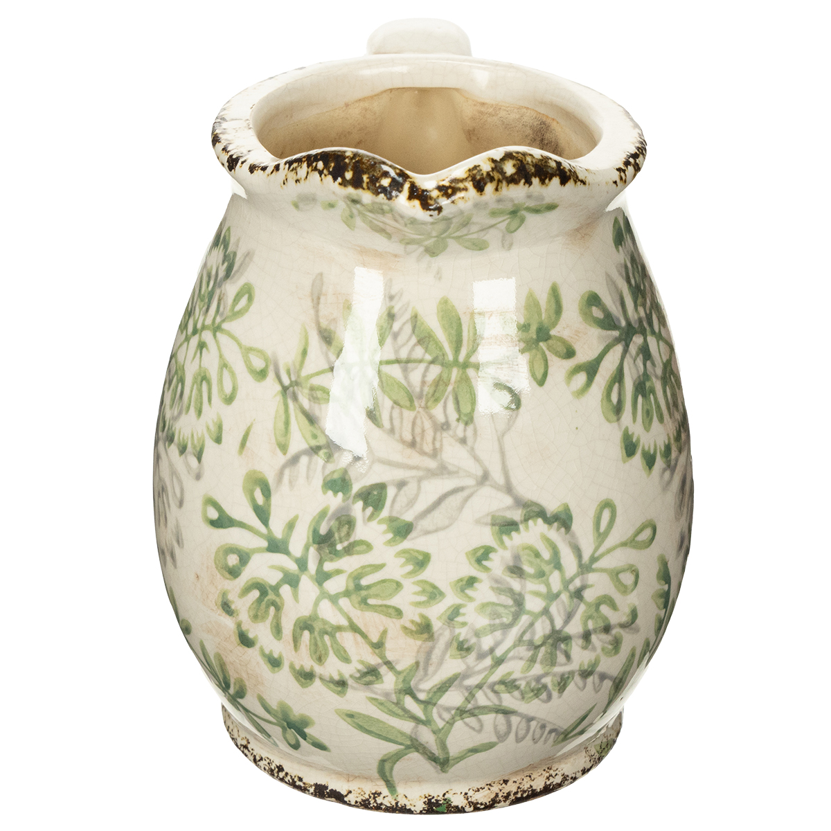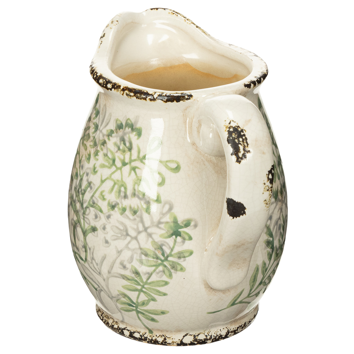 Ce pichet vintage à planter est un véritable atout déco. Avec sa forme intemporelle, sa finition rustique et ses détails charmants, il s'intègre parfaitement dans un intérieur de style champêtre. Vous pouvez l'utiliser comme un pot de fleurs décoratif qui mettra joliment en valeur vos plantes. Imaginez ce pichet en céramique sur une petite table de salon, rempli de fleurs fraîches. Ses dimensions – 16 cm de hauteur et 13 cm de diamètre – sont idéales pour les petits bouquets sans encombrer l'espace. Pour une ambiance plus naturelle, vous pouvez y planter des herbes aromatiques. Basilic, persil ou romarin y trouveront leur place avec style, que ce soit dans la cuisine ou sur la terrasse. L'association du blanc et du vert crée une harmonie et apporte une touche de fraîcheur à votre décoration. Ce pichet-pot au charme nostalgique se marie particulièrement bien avec d'autres éléments rustiques, comme les meubles en bois ou les textiles shabby chic. C'est aussi une excellente idée cadeau, pour les amoureux des plantes ou les adeptes du style champêtre.