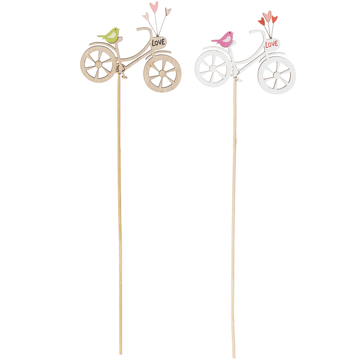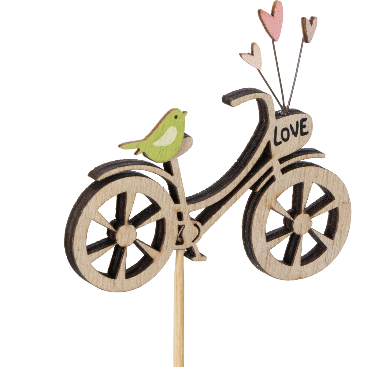 Envie d'une décoration printanière originale ? Ces piquets en bois à motif de vélo apporteront une touche romantique à votre salon, balcon ou terrasse. Avec leurs détails délicats, comme un vélo en bois naturel, de petits cœurs et d'adorables petits oiseaux, ils ne manqueront pas d'attirer tous les regards. Imaginez-les dans un bouquet printanier ou en vedette dans une jardinière ! Leur aspect naturel s'accorde aussi bien avec une décoration champêtre qu'avec des compositions florales modernes.