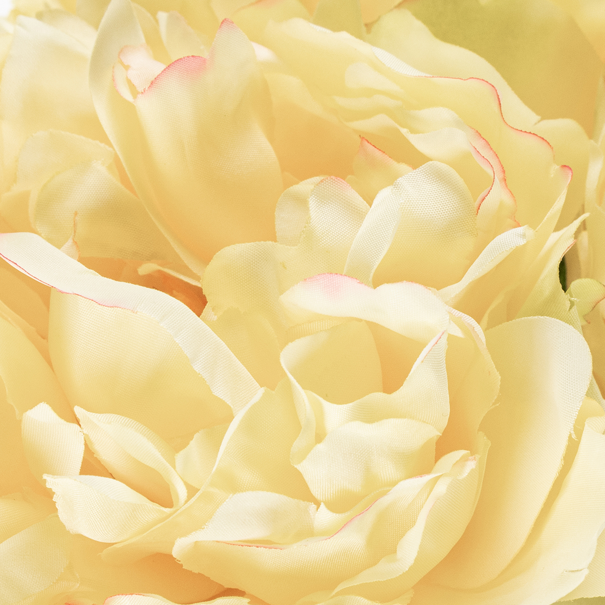 Nos pivoines artificielles sublimeront tous les styles de décoration. Leur douce teinte jaune crée une ambiance chaleureuse et accueillante, s'harmonisant parfaitement avec les intérieurs modernes, scandinaves ou même classiques. Grâce à leur tissu en soie de haute qualité, elles sont d'un réalisme saisissant. Idéales pour les amoureux des fleurs naturelles qui souhaitent s'affranchir des contraintes d'arrosage et de flétrissement. Durables et faciles d'entretien, ces fleurs conserveront leur beauté pendant de nombreuses années.
