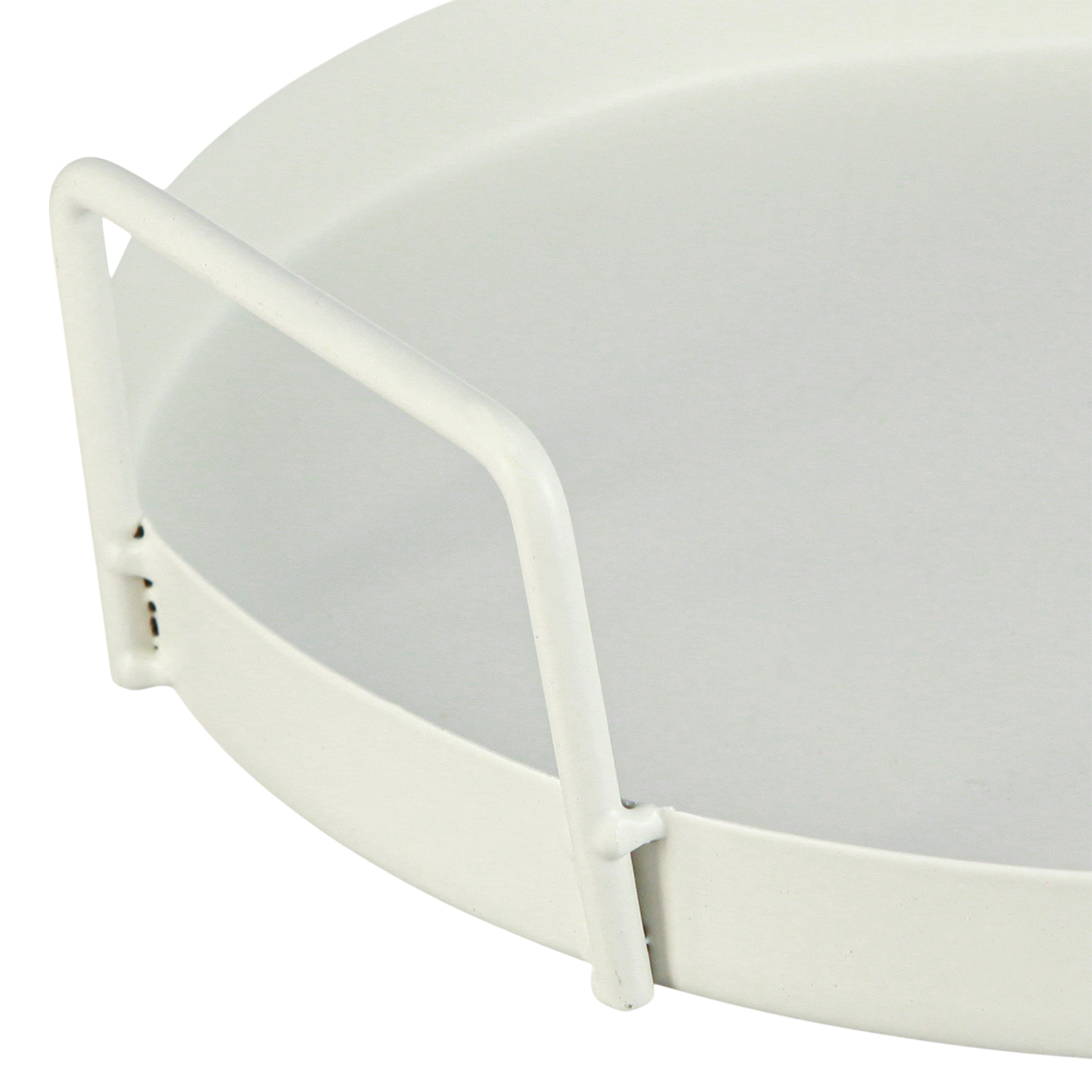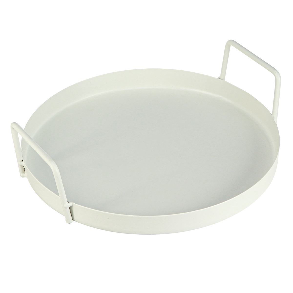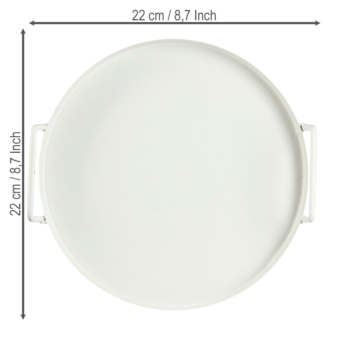 Avec un diamètre de 22 cm et une hauteur discrète de 3 cm, ce plateau rond blanc est idéal pour de multiples usages. Fabriqué en métal robuste, il séduit par sa durabilité et sa grande fonctionnalité. Ses poignées pratiques permettent de transporter facilement et en toute sécurité boissons, en-cas ou même un petit-déjeuner directement sur le canapé – ou dans le jardin pour une réception estivale !