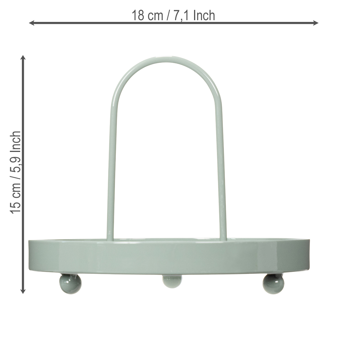 Vous avez, vous aussi, ces petits objets qui traînent sur votre table de cuisine ou à manger et qui semblent ne jamais trouver leur place ? Alors, nous avons l'accessoire parfait pour vous ! Ce plateau décoratif, avec sa haute anse et sa forme ronde, allie fonctionnalité et style. Sa finition vert brillant élégante s'harmonise à merveille avec les intérieurs modernes et classiques. Il vous invite à laisser libre cours à votre créativité : servir de délicieux amuse-bouches, présenter avec soin épices et sauces, ou tout simplement mettre en valeur vos objets décoratifs préférés. Des pots d'herbes aromatiques parfaitement disposés ? Un jeu de lumière harmonieux avec des bougies chauffe-plat ? Décorer avec des plateaux est non seulement ludique, mais crée aussi une ambiance chaleureuse et conviviale. Ce plateau en métal, aux douces teintes pastel, s'accorde à merveille avec les intérieurs contemporains et minimalistes. Un véritable atout pour la cuisine, la table à manger, ou même le rebord de la fenêtre.