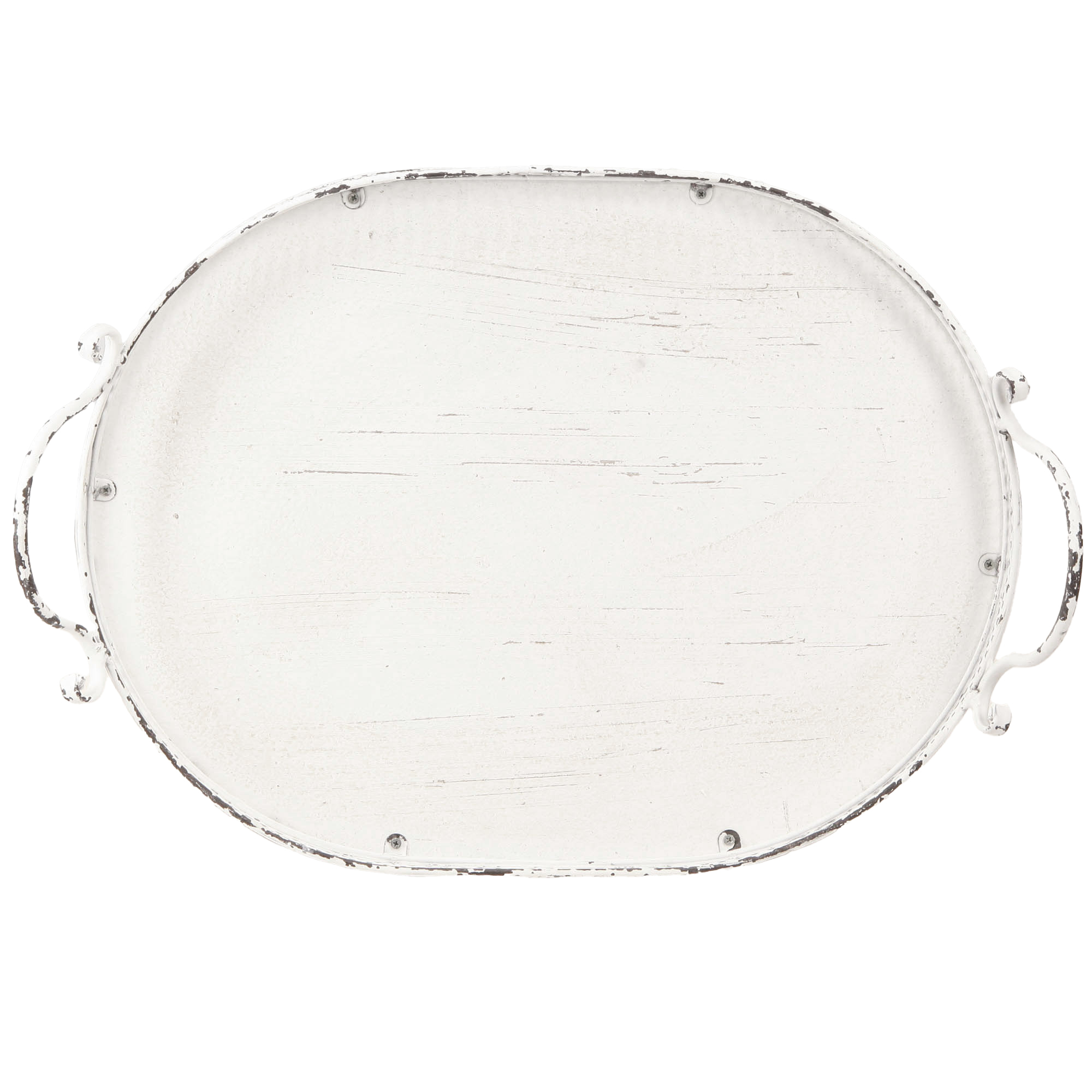 Plateau ovale Shabby Chic avec poignées blanc 36/45cm lot de 2 pièces