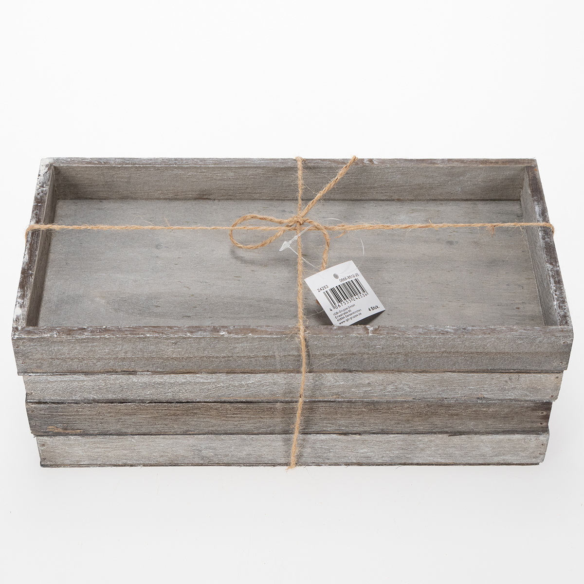 Ce plateau de service rectangulaire en bois s'intègre parfaitement à tous les intérieurs. Qu'il serve de support élégant pour vos objets décoratifs ou de plateau pratique pour le café et les gâteaux, il séduit par sa simplicité et sa qualité de fabrication. Son style rustique et vintage se marie à merveille avec les matériaux naturels et les couleurs douces. Les adeptes d'une décoration de style campagne chic ou scandinave seront conquis. Et les possibilités ? Elles sont quasi infinies ! Dans la cuisine, il permet de garder épices, huiles ou petits ingrédients à portée de main et joliment présentés. Au salon, il offre un espace idéal pour des bougies, des vases ou de petits objets décoratifs. Ce plateau en bois est même parfait pour la salle de bain, par exemple pour les cosmétiques, les huiles essentielles ou les savons. Un atout particulièrement pratique : grâce à sa forme rectangulaire, les plateaux s'empilent facilement et se rangent aisément dans un placard. Léger et robuste, son bois est durable, ce qui en fait un compagnon fidèle au quotidien. Et avec les quatre plateaux inclus, donnez vie à toutes vos idées déco sans attendre.