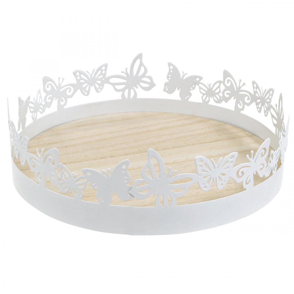 Plateau ressort, décoration papillon, décoration de table, décoration métal pour plantation blanc Ø20cm H6,5cm
