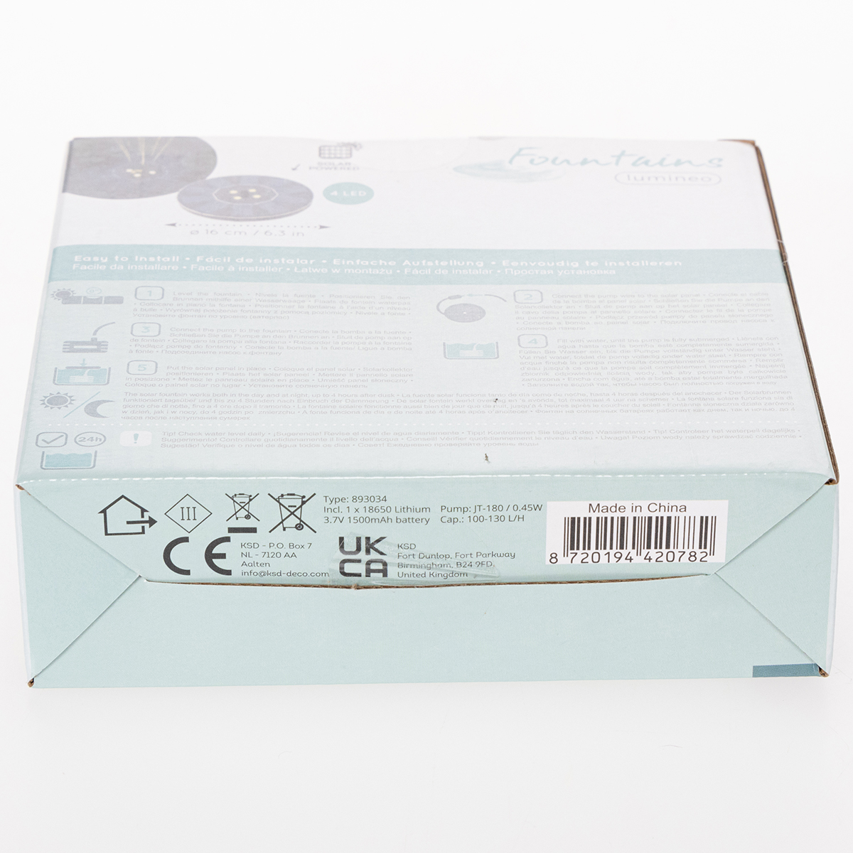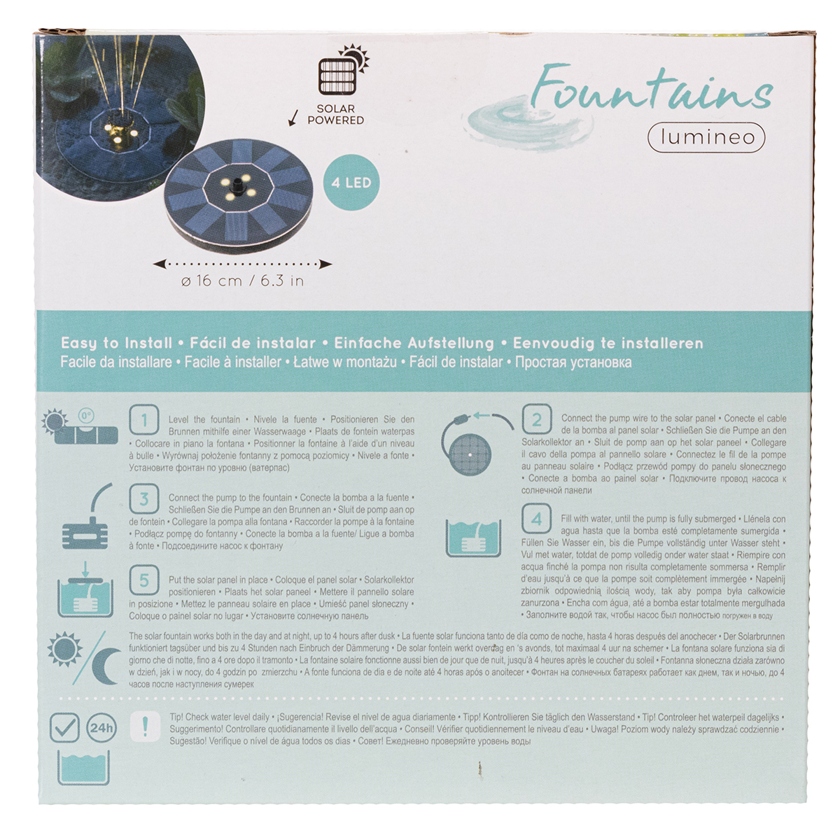 Installez-la simplement, profitez de son éclairage LED blanc chaud et le tour est joué ! Grâce à son design noir élégant, la pompe solaire s'intègre harmonieusement à tous les styles de jardin, du minimalisme moderne au style plus traditionnel. Impressionnez vos invités lors de vos garden-parties ou créez votre propre oasis de tranquillité. Avec un diamètre de 16 cm, la pompe solaire est compacte et attire tous les regards, même la nuit.