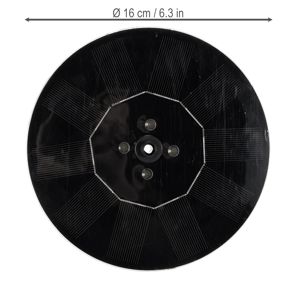 Installez-la simplement, profitez de son éclairage LED blanc chaud et le tour est joué ! Grâce à son design noir élégant, la pompe solaire s'intègre harmonieusement à tous les styles de jardin, du minimalisme moderne au style plus traditionnel. Impressionnez vos invités lors de vos garden-parties ou créez votre propre oasis de tranquillité. Avec un diamètre de 16 cm, la pompe solaire est compacte et attire tous les regards, même la nuit.