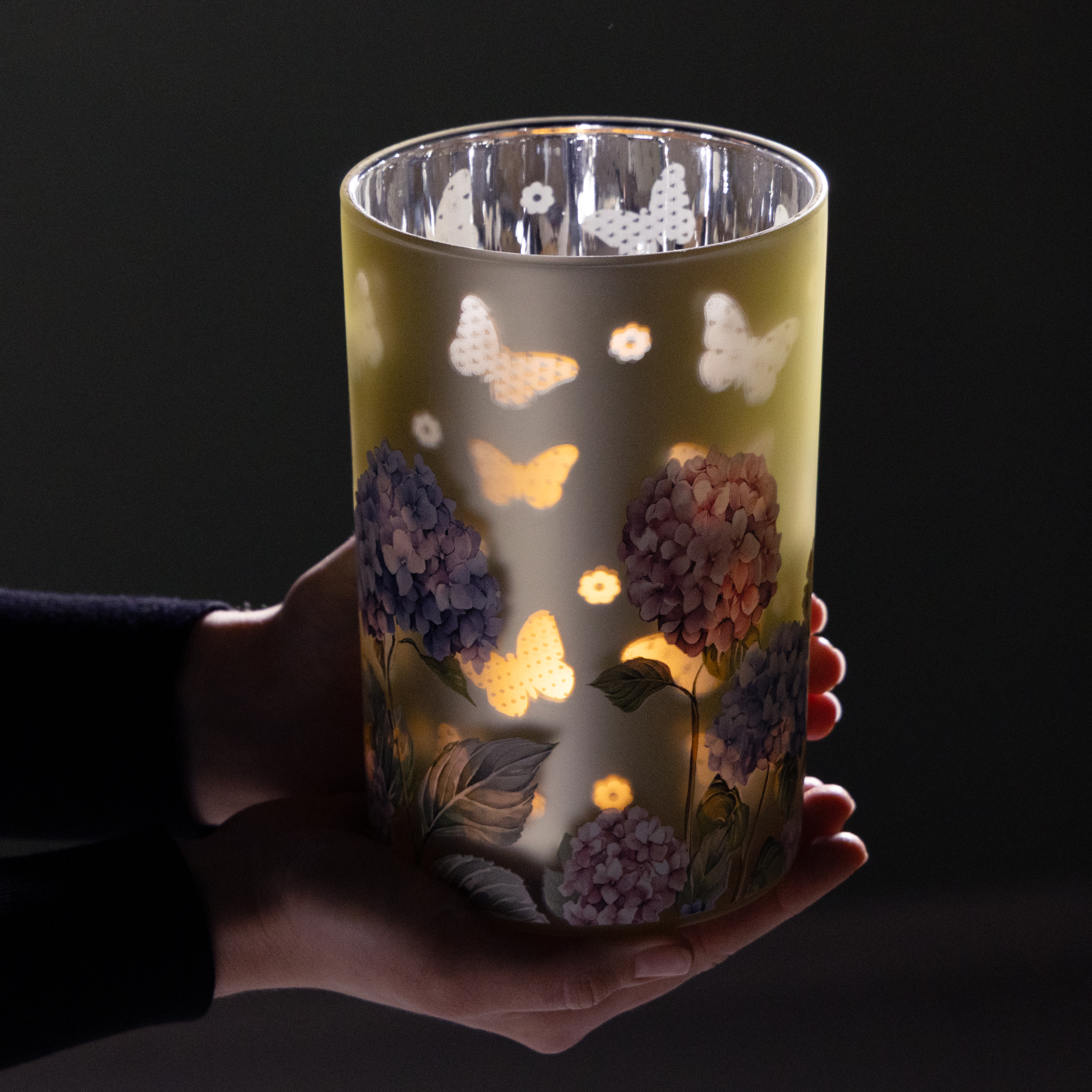 Grâce à son design intemporel, ce photophore s'harmonise parfaitement avec presque tous les styles. Il s'intègre avec élégance dans une décoration bohème, vintage ou classique et trouve aussi bien sa place sur une table de fête, lors d'une soirée chaleureuse au coin du feu ou lors d'une garden-party chic. Pour un effet vraiment harmonieux, il peut être associé à d'autres accessoires floraux ou à des objets décoratifs en verre similaires.