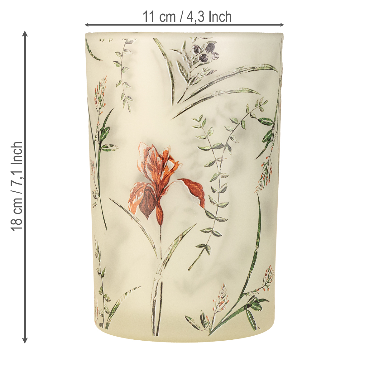 Ce photophore en verre à motif floral est bien plus qu'un simple bougeoir : c'est un véritable accessoire de décoration. Ses délicats motifs floraux beiges, verts et rouges lui confèrent une allure naturelle et harmonieuse, idéale pour un décor vintage ou champêtre. Fabriqué artisanalement, chaque photophore est unique. Mesurant 18 cm de hauteur et 12 cm de diamètre, il offre un espace généreux pour les bougies chauffe-plat classiques comme pour les bougies décoratives. Le verre de haute qualité laisse magnifiquement filtrer la lumière et la chaleur, créant une ambiance particulièrement magique dans une lumière tamisée.