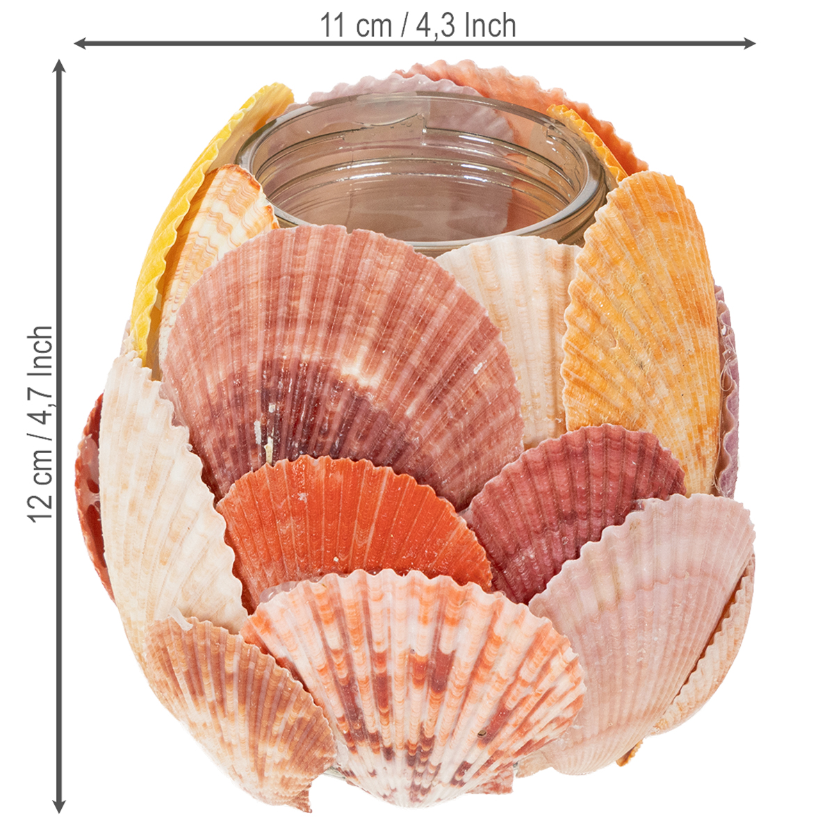 Avec ses 12 centimètres de hauteur et 11 centimètres de diamètre, et sa forme pratique, ce porte-bougie chauffe-plat s'intègre parfaitement à différents styles de décoration. Les couleurs naturelles des coquillages s'harmonisent particulièrement bien avec un mobilier de style champêtre ou d'inspiration marine.