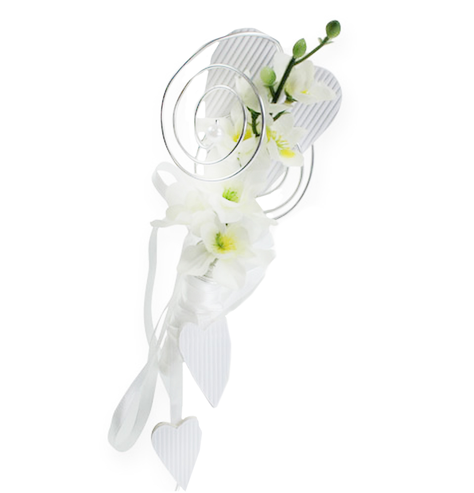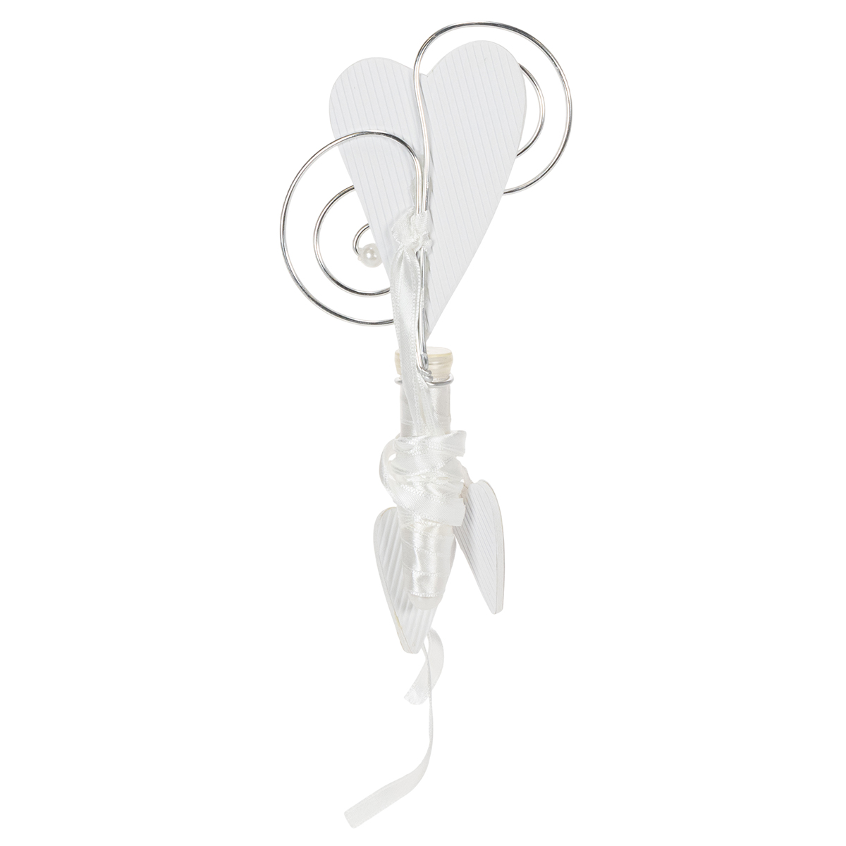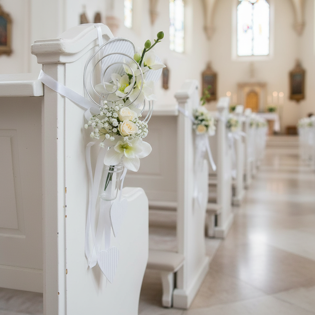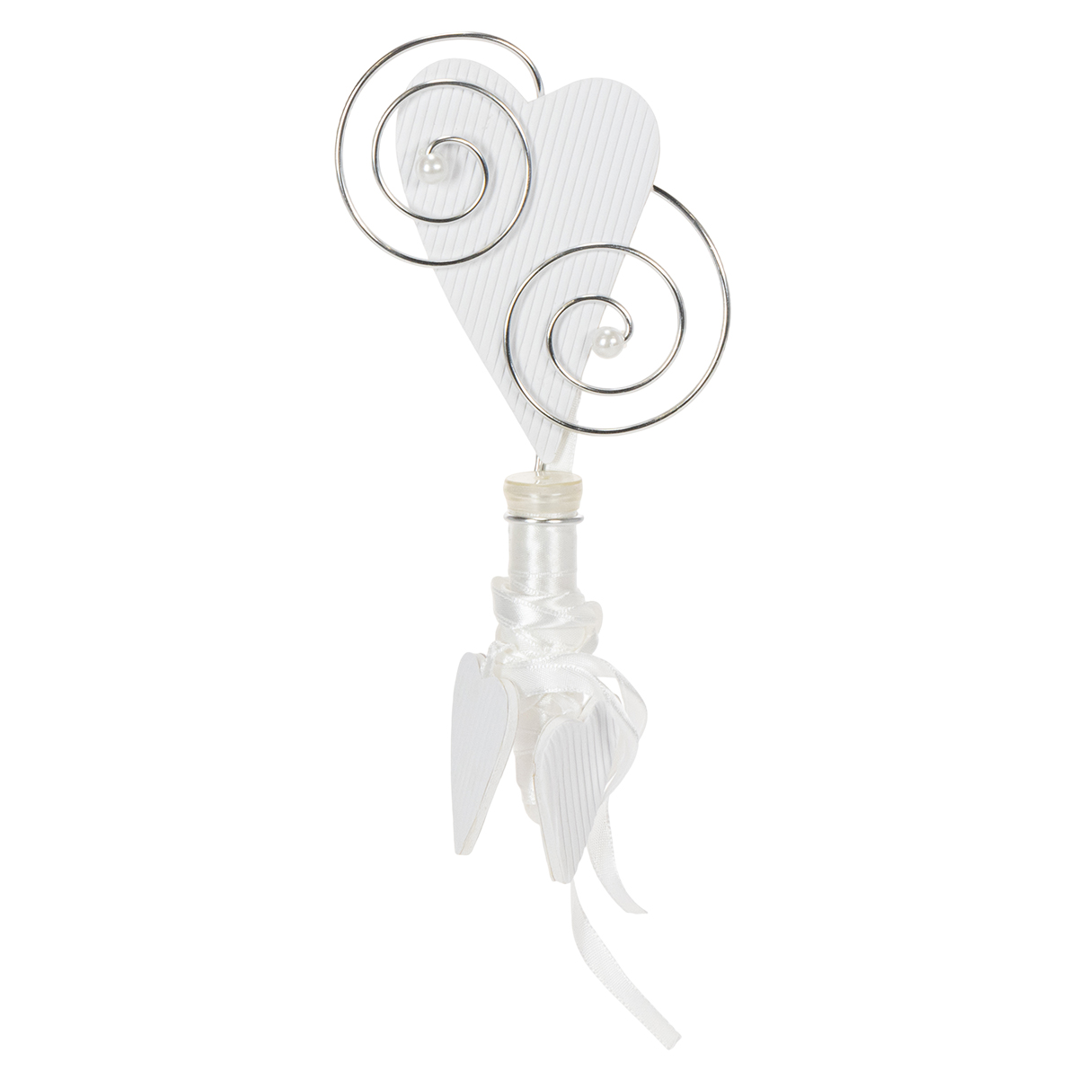 Cet ornement pour banc d’église doté d’un petit tube et d’un coeur est un must pour réussir votre décoration de mariage ! Suspendez ces coeurs à l’aide d’un crochet au bout de chaque banc de l’église et laissez pendre en direction du sol le ruban de soie orné de deux autres coeurs en papier ondulé. Et ce n’est pas tout : cette suspension est dotée d’un dispositif de maintien destiné à recevoir le petit tube à fleurs compris dans la livraison.