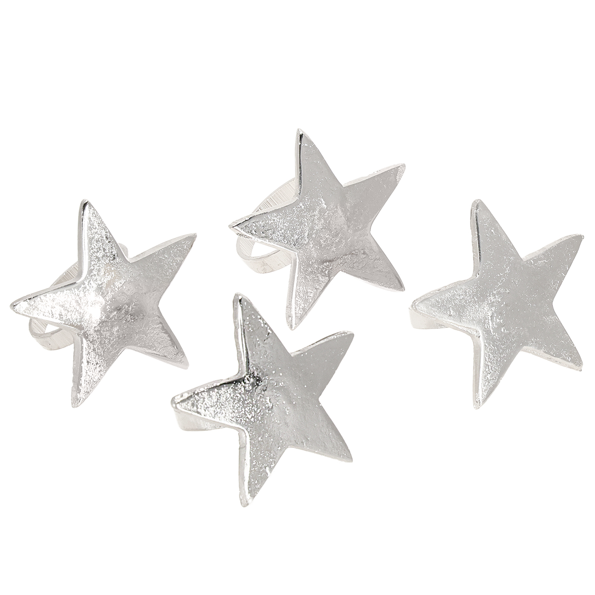 Nom du produit : Porte-serviettes étoile ronds de serviette métal argenté 7cm Ø4cm 4 pcs