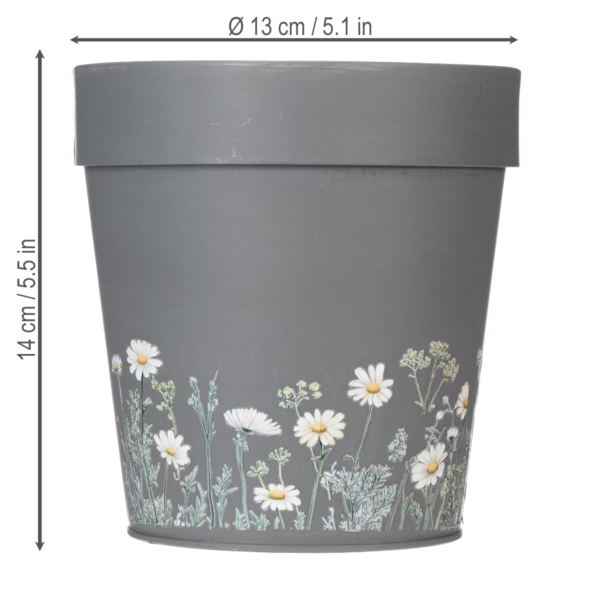 Le motif floral de cet élégant pot de fleurs gris apporte une touche de modernité et de pureté à tout intérieur. Inspiré du design scandinave, ce pot séduit par son harmonieux mélange de simplicité et de souci du détail. Ses charmants imprimés floraux sont intemporels et créent une ambiance harmonieuse dans votre décoration. Fabriqué en métal robuste et léger, ce pot est durable ; toutefois, une résistance totale à la rouille ne peut être garantie en extérieur ou au contact de l’eau.