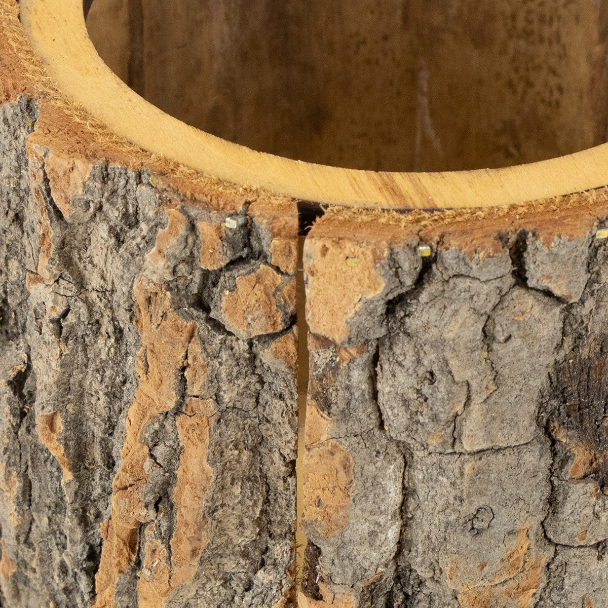 Nom du produit : Pot de fleurs en bois écorce jardinière gnome rouille H24cm