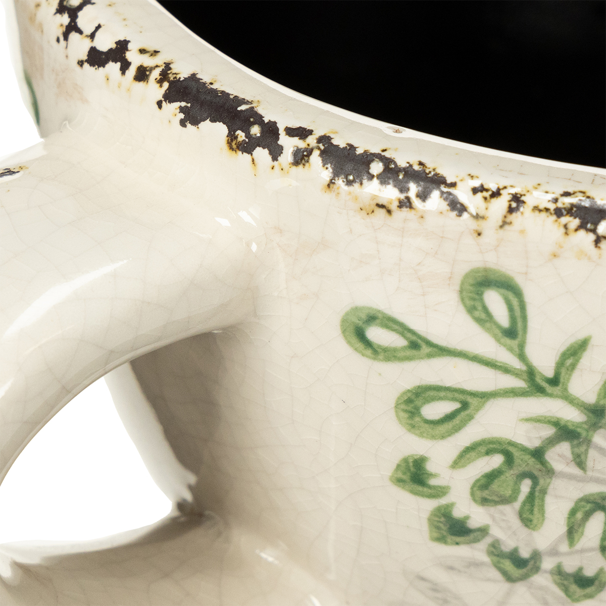 Envie de mettre en valeur vos plantes d'intérieur avec style ? Ce pot en céramique à motif floral apportera une touche de fraîcheur à votre rebord de fenêtre ! Avec sa base blanche et ses délicats motifs végétaux verts, ce pot rustique allie esthétique classique et charme vintage. Utilisé comme pot décoratif sur votre rebord de fenêtre préféré, comme pot à crayons original sur votre bureau ou même comme solution de rangement ingénieuse dans la salle de bain, cet accessoire polyvalent s'adapte à tous vos besoins.