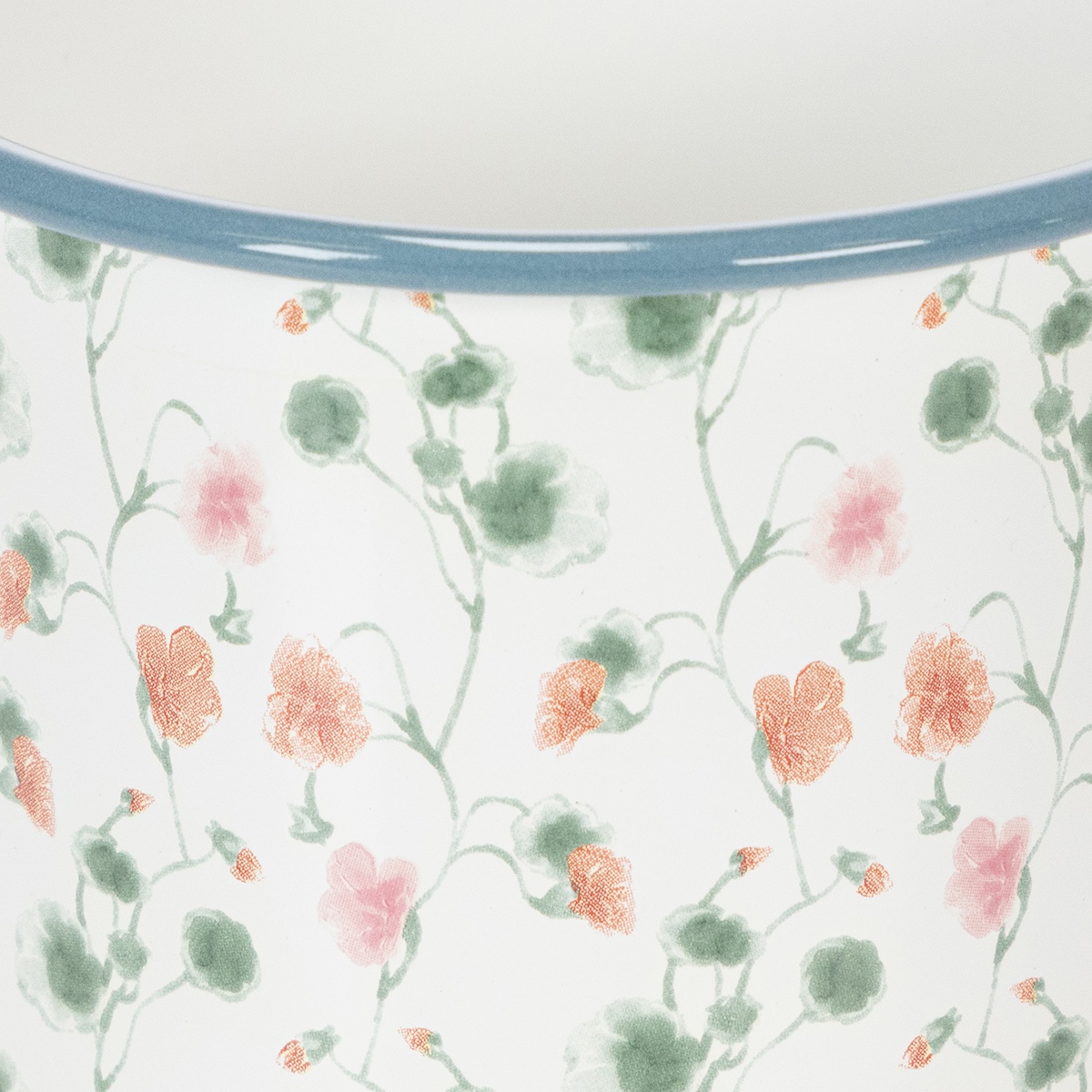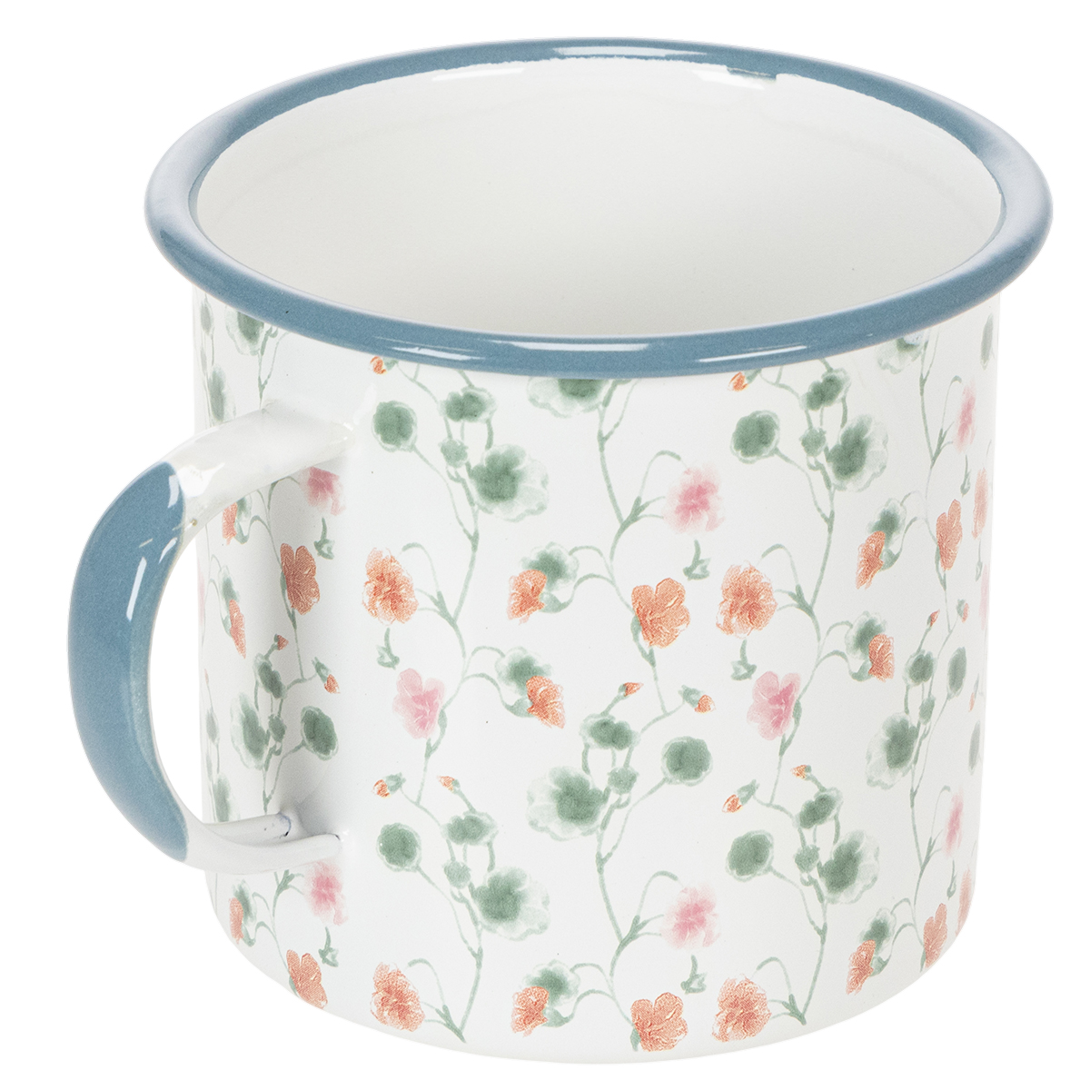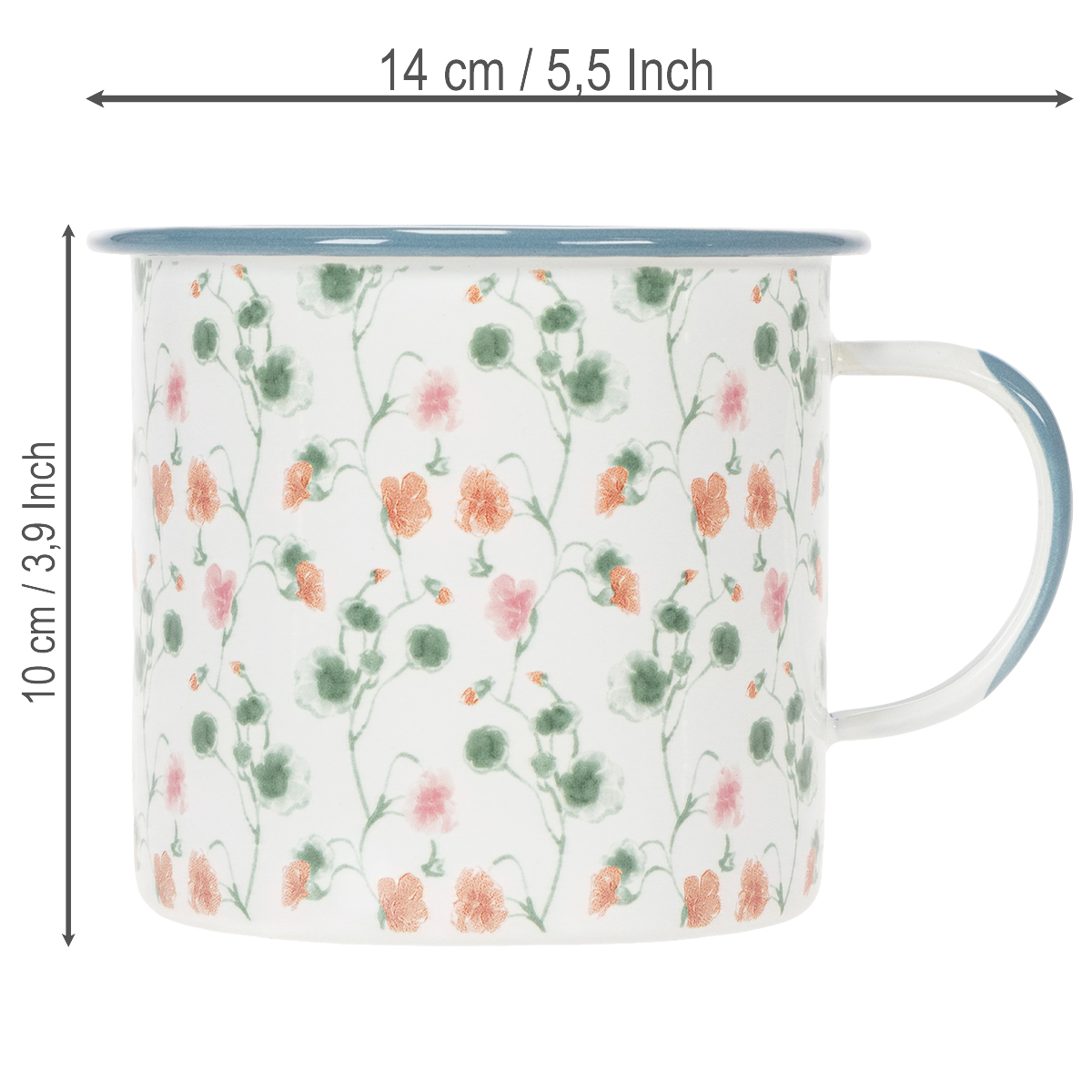 Vous pouvez présenter vos plantes préférées ou vos idées décoratives dans cette jardinière. La tasse en émail aux motifs de fleurs ludiques a beaucoup de charme vintage.