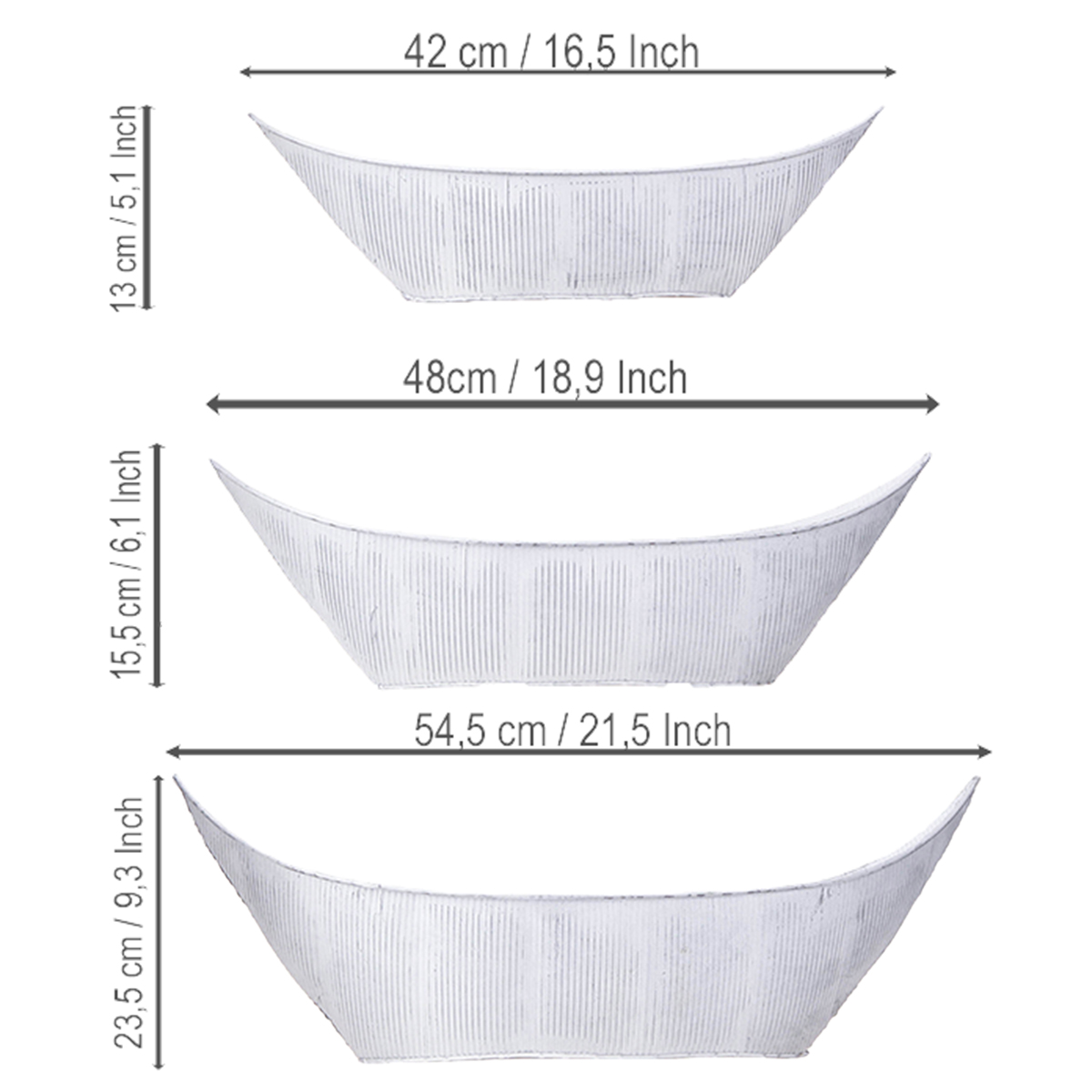 Pot de fleurs en forme de bateau, en métal blanc/argenté, 54,5/48/42 cm, lot de 3