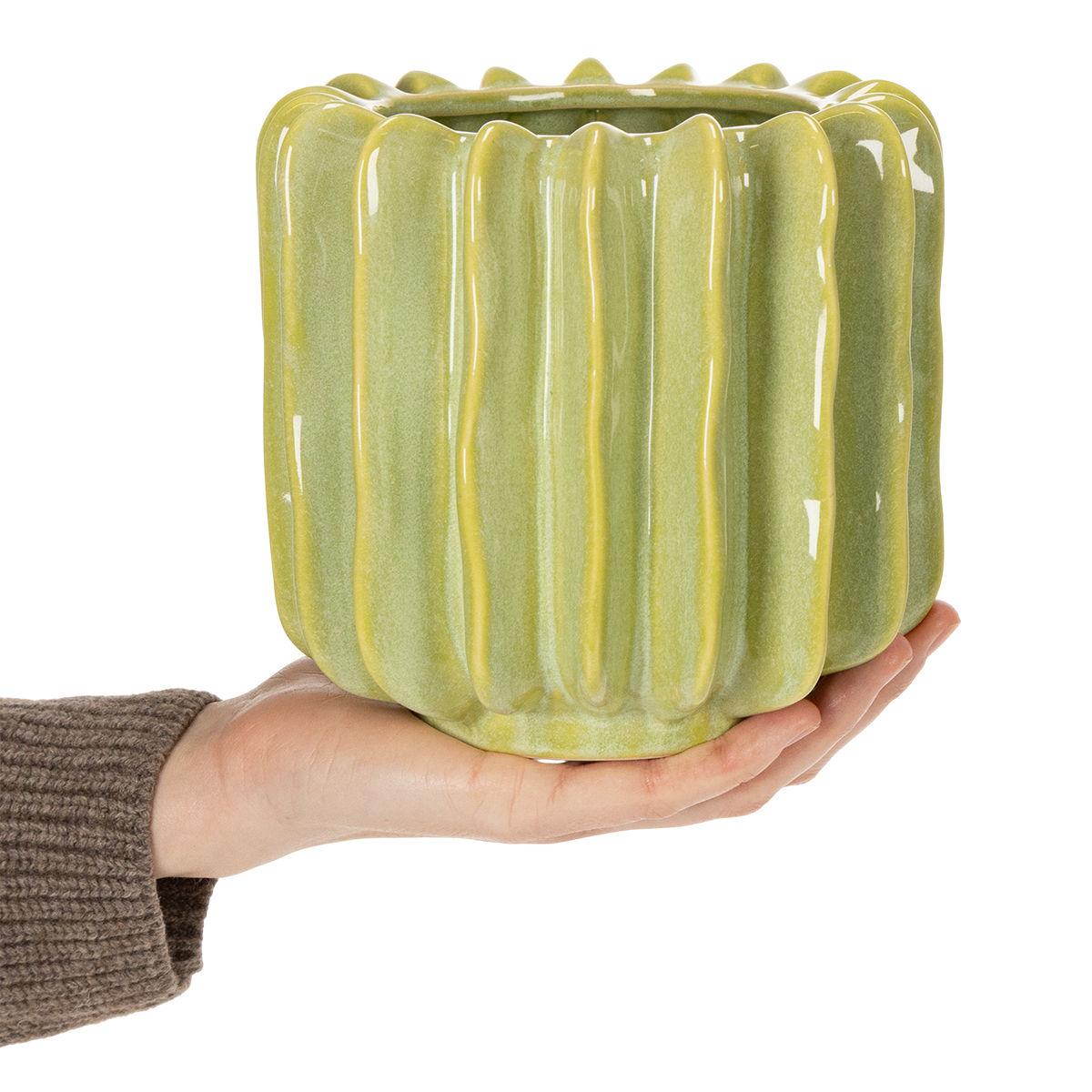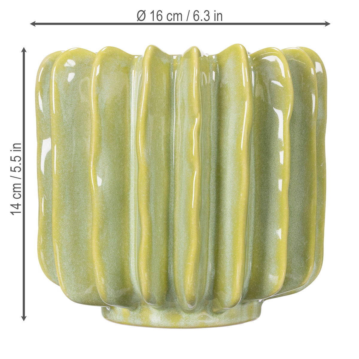Quel objet décoratif ! Ce pot de fleurs en forme de cactus vert est non seulement magnifique, mais il apporte aussi une touche de fraîcheur et d'exotisme à votre intérieur. Que vous soyez passionné(e) de cactus ou simplement amateur(trice) d'objets de décoration élégants, cette pièce vous ravira. Sa couleur verte harmonieuse, associée à son design unique et à ses rainures originales, confère à votre intérieur un éclat particulier. Imaginez l'effet de ce pot en céramique de 16 cm sur le rebord de votre fenêtre, une étagère de votre salon ou même votre bureau. Il allie à la perfection style et fonctionnalité.