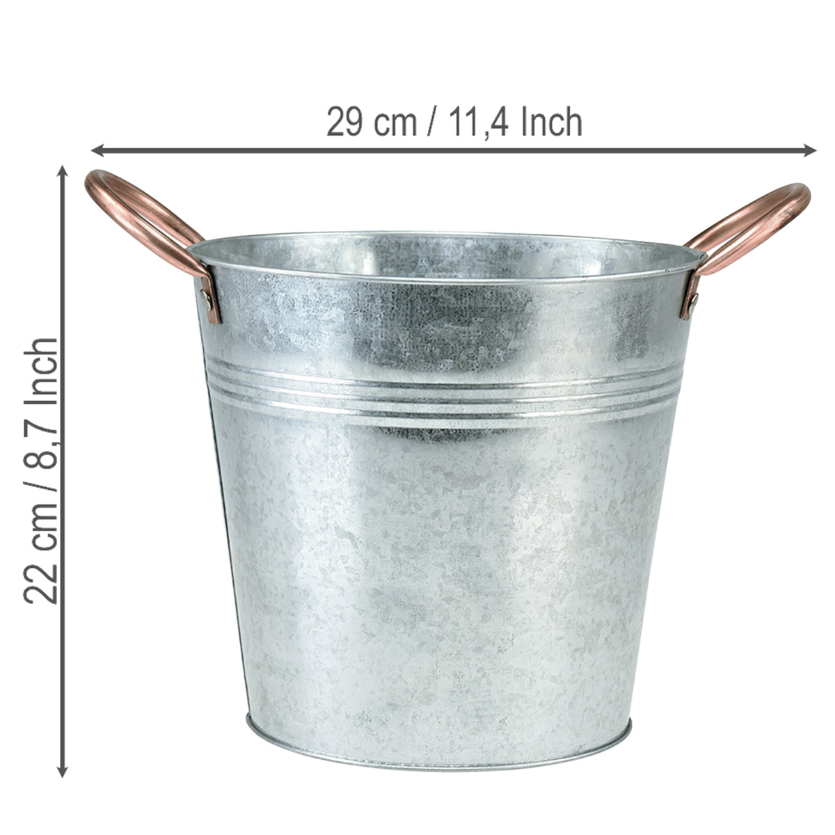 Pot de fleurs en métal avec poignées, seau décoratif, Ø 21 cm H 19,5 cm