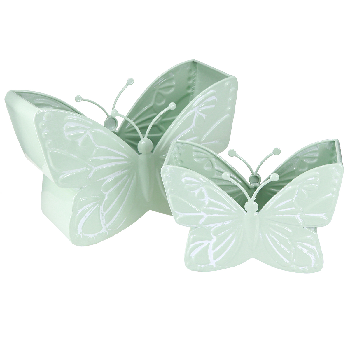 Pot de fleurs papillon en métal vert 22,5/30 cm, lot de 2