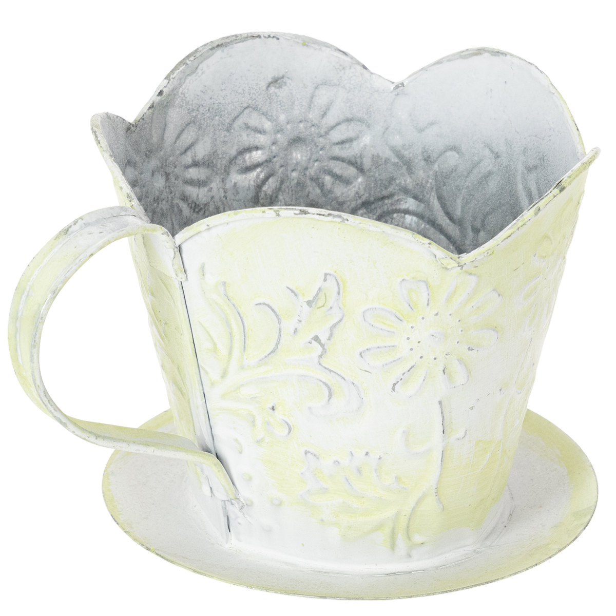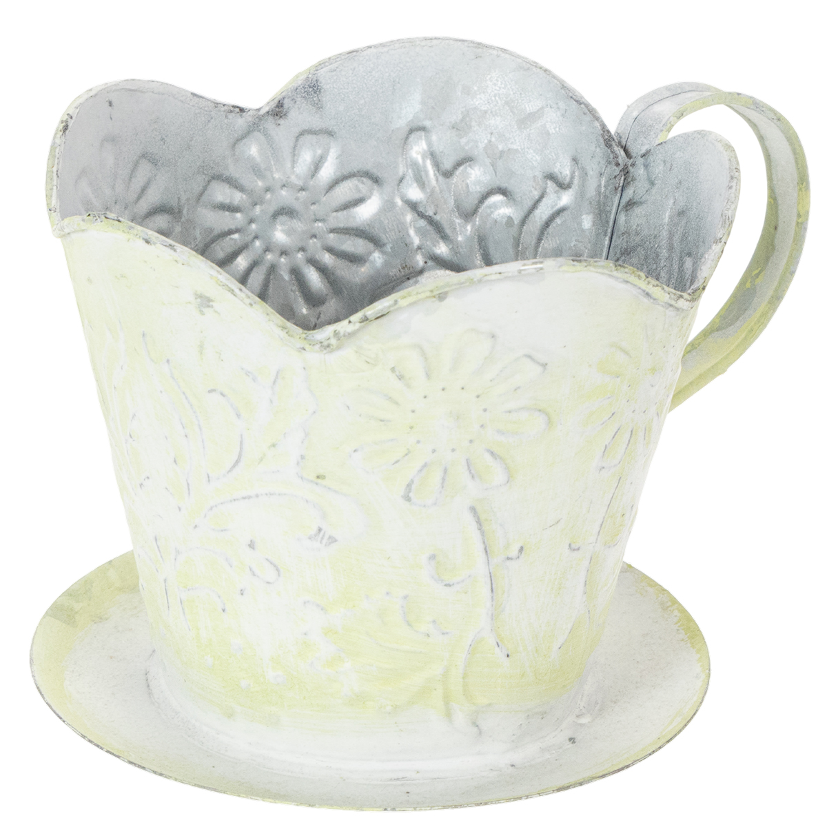 Pot de fleurs, porte-filtre à café décoratif, pot en métal pour plantes, décor floral vert et blanc, style shabby chic, H 11 cm Ø 11 cm