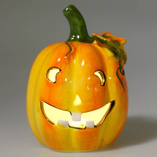 Donc, le sourire de cette citrouille me sourit et il peut donner une ambiance effrayante à Halloween dans votre décoration d'automne. La citrouille décorative était astucieusement réalisée en céramique et brillait dans les couleurs typiques de l'orange et du vert. La particularité: à l'intérieur de la citrouille ornementale, une lampe à LED est intégrée, que vous pouvez allumer en bas. La lumière vacille alors de mauvaise humeur à l’heure sombre.Le trio de lampes à LED peut être merveilleusement présenté dans la fenêtre, dans les zones d'entrée ou dans la décoration de la table. Les enfants s’amuseront tout particulièrement avec les personnes amusantes lorsque vous les placerez dans la crèche.