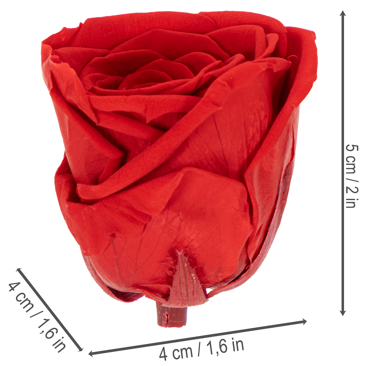Nos roses stabilisées séduisent par leur rouge éclatant et leur confection artisanale de grande qualité. Chaque rose est soigneusement sélectionnée et préservée grâce à un procédé spécial. Ce procédé garantit la conservation de la texture et de l'aspect naturels de la fleur, comme si elle venait d'être cueillie. Mesurant environ 5 cm de hauteur et 4 cm de diamètre, ces roses aux proportions parfaites apportent une touche d'élégance à toute décoration.