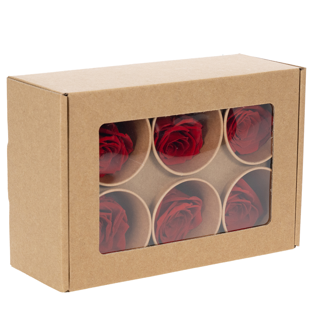 Roses stabilisées décoratives, 5 cm, lot de 6, pour une touche romantique dans votre salon ou pour un mariage.
