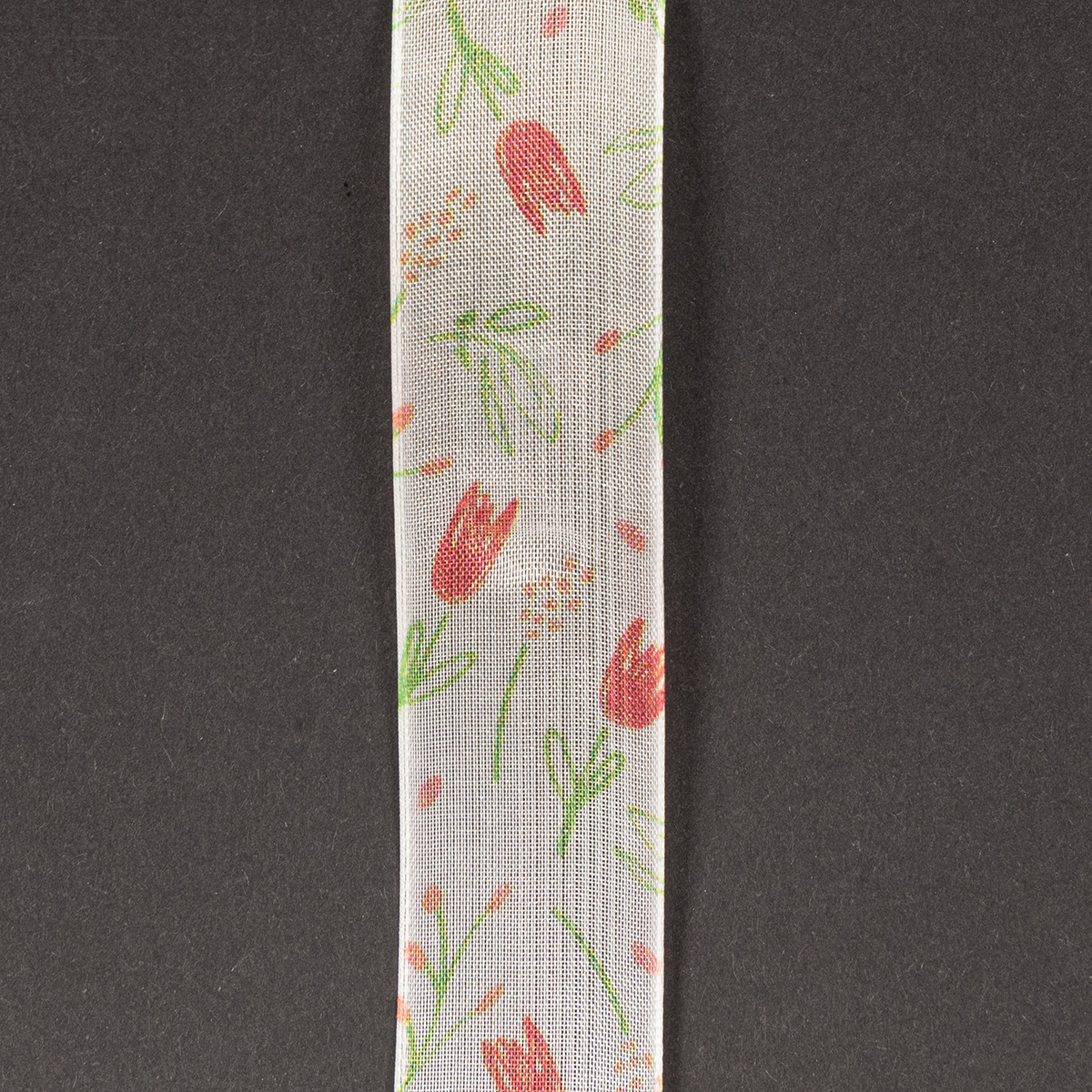Ruban cadeau à motif tulipe, idéal pour les occasions spéciales et la décoration saisonnière, 2,5 cm de large, 18 m de long