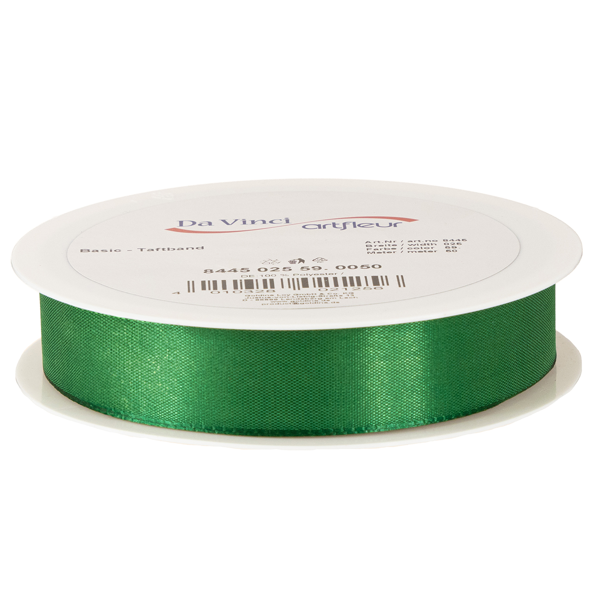 Le ruban décoratif et cadeau vert foncé mesure environ 25 millimètres de large et 50 mètres de long. Il est 100 % polyester. Enroulé sur une bobine en plastique pratique, il se range facilement dans un tiroir ou s'accroche à un distributeur.
