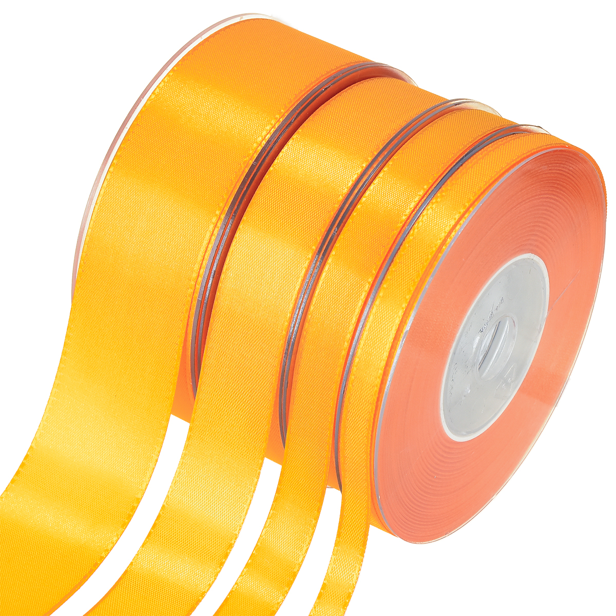 Notre ruban cadeau et décoration orange est enroulé sur une bobine en plastique. Chaque variante a une longueur de 50 m.