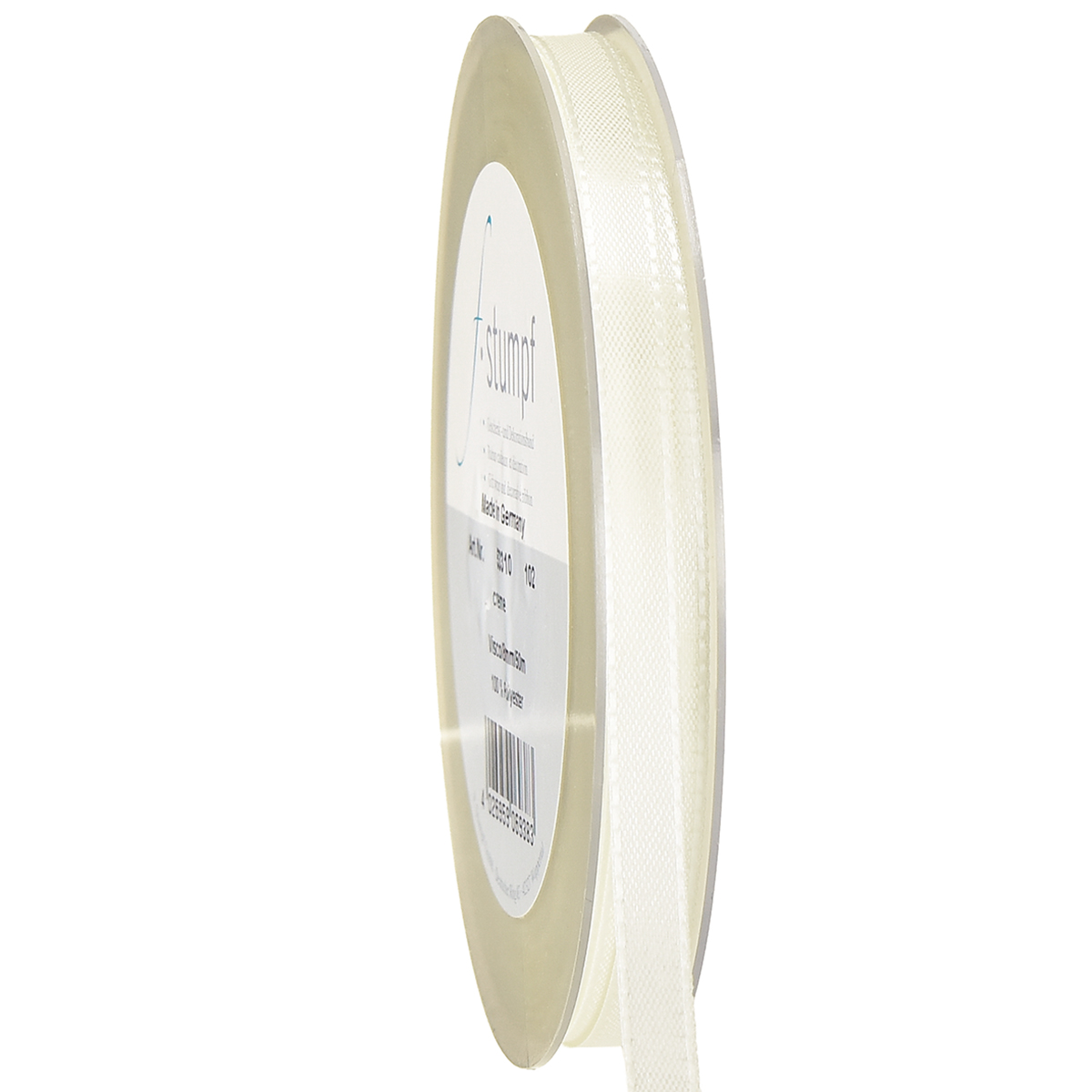 Notre ruban cadeau et décoration crème a une largeur de 8 mm environ et une longueur de 50 m à peu près. En 100 % polyamide, il est enroulé sur une bobine en plastique.