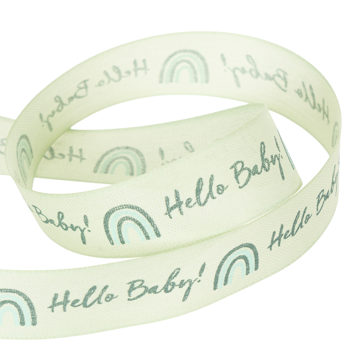 Ruban cadeau Hello Baby, ruban décoratif vert 25 mm 16 m