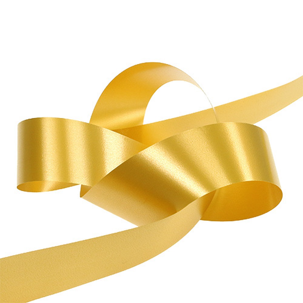 Notre ruban cadeau or est proposé en rouleau. Le ruban décoratif atteint ainsi une largeur de 50 mm et a une longueur de 100 m environ.