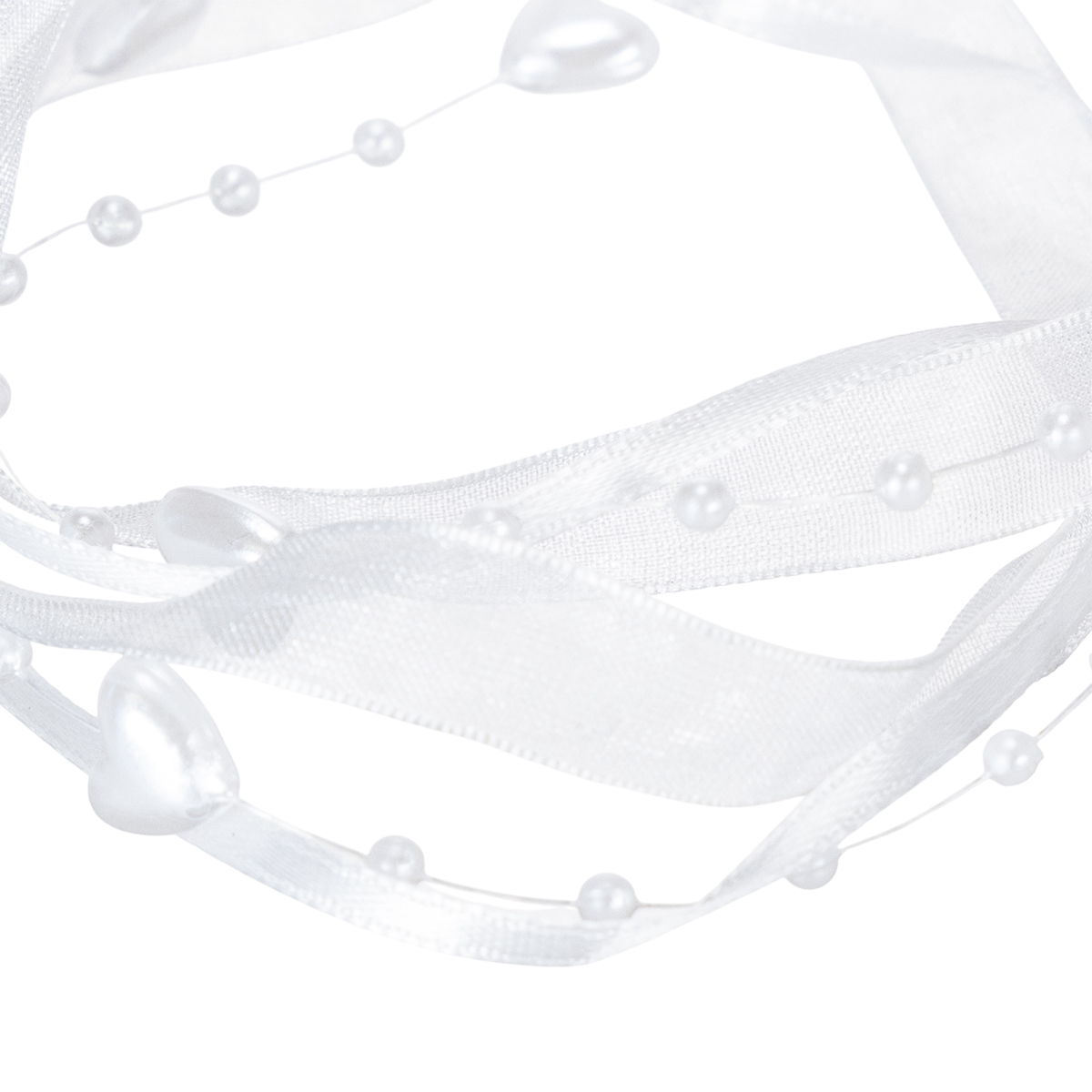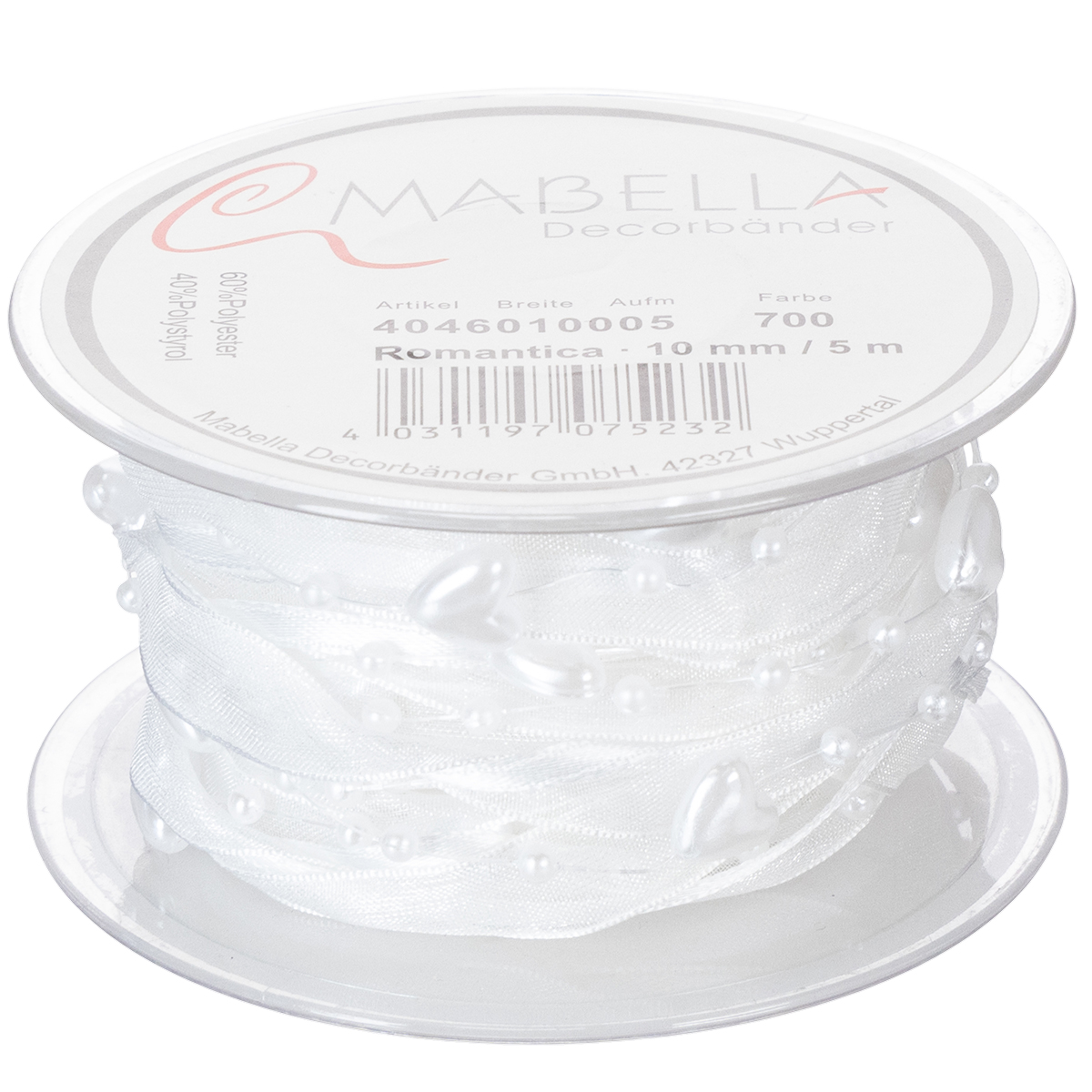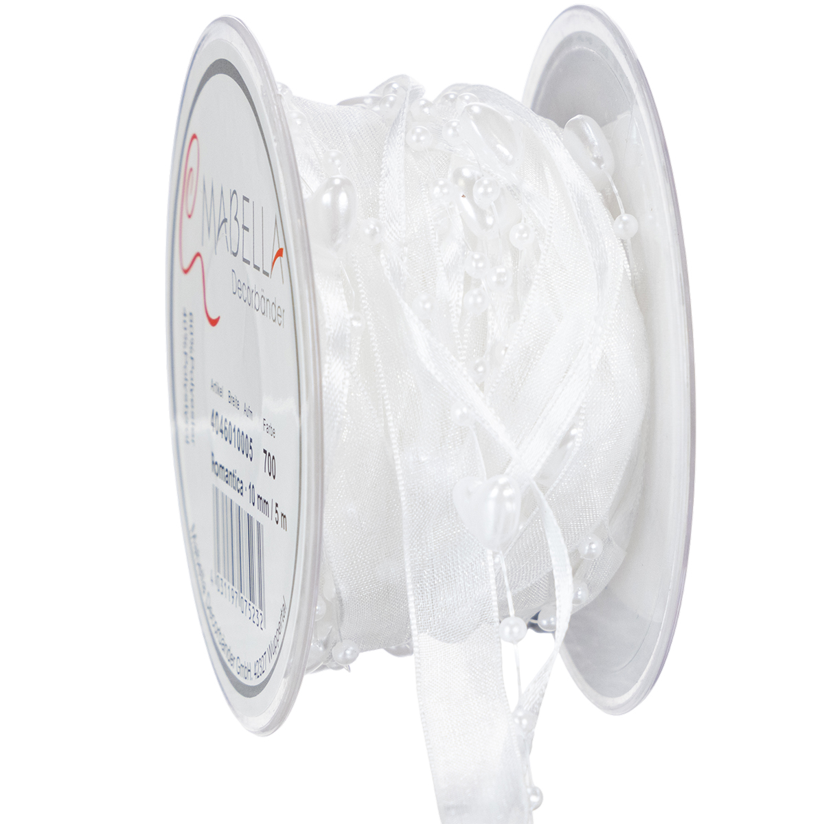 Ruban d'organza blanc pour décoration de mariage, 10 mm x 5 m, avec cœurs et perles