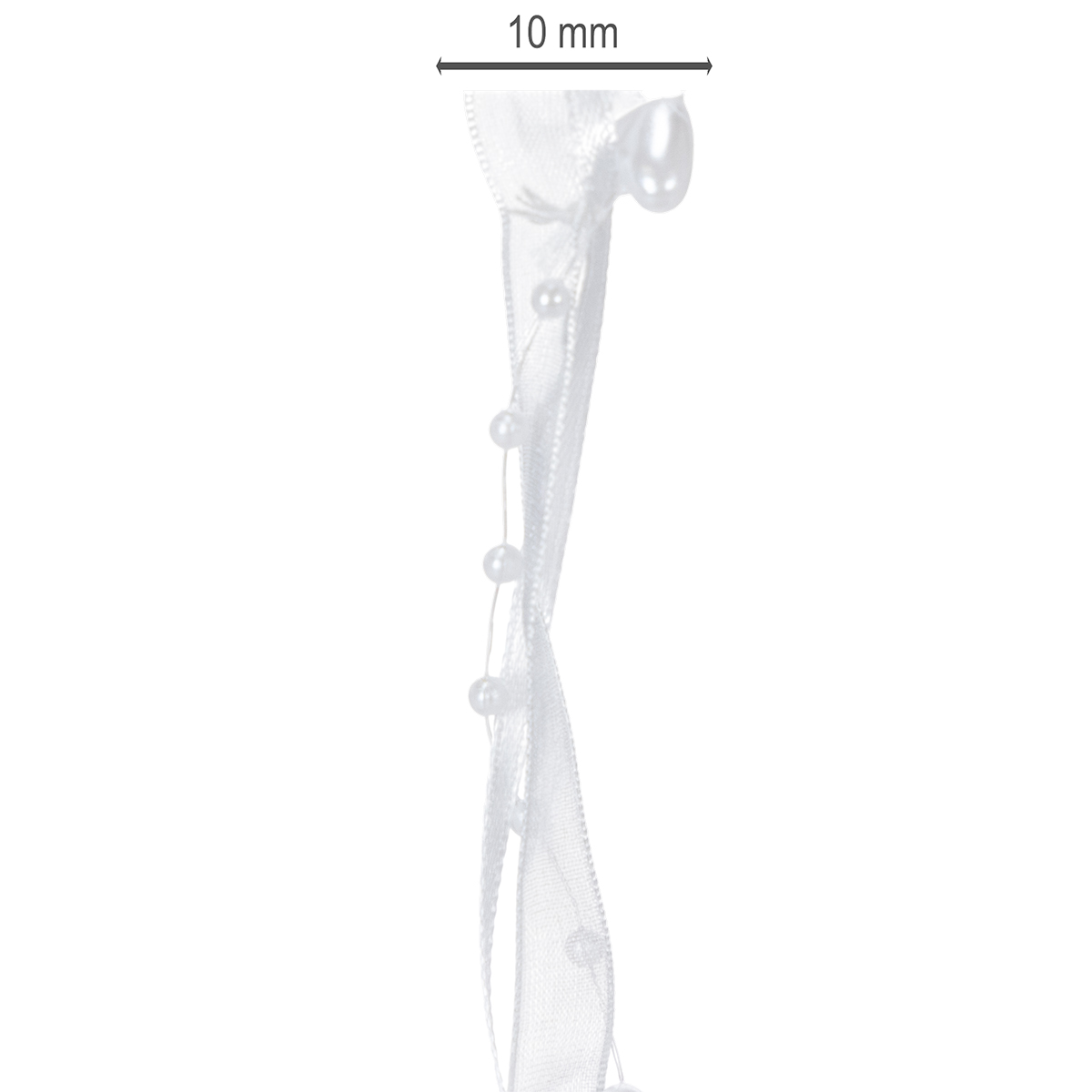 Nom du produit : Ruban d'organza blanc pour décoration de mariage, 10 mm x 5 m, avec cœurs et perles