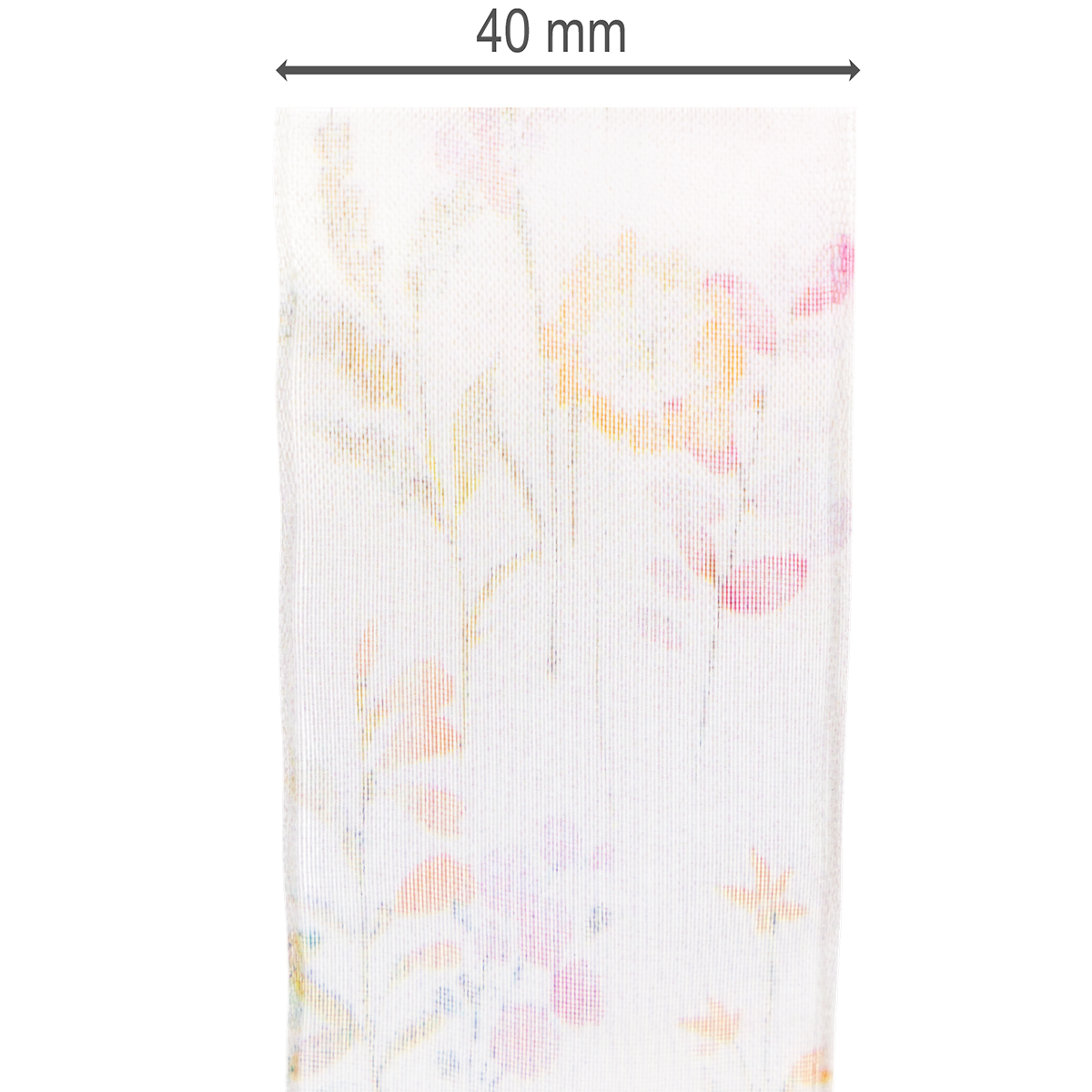 Nom du produit : Ruban d'organza, ruban de mousseline, à motifs floraux, orange/rose, 40 mm, 15 m