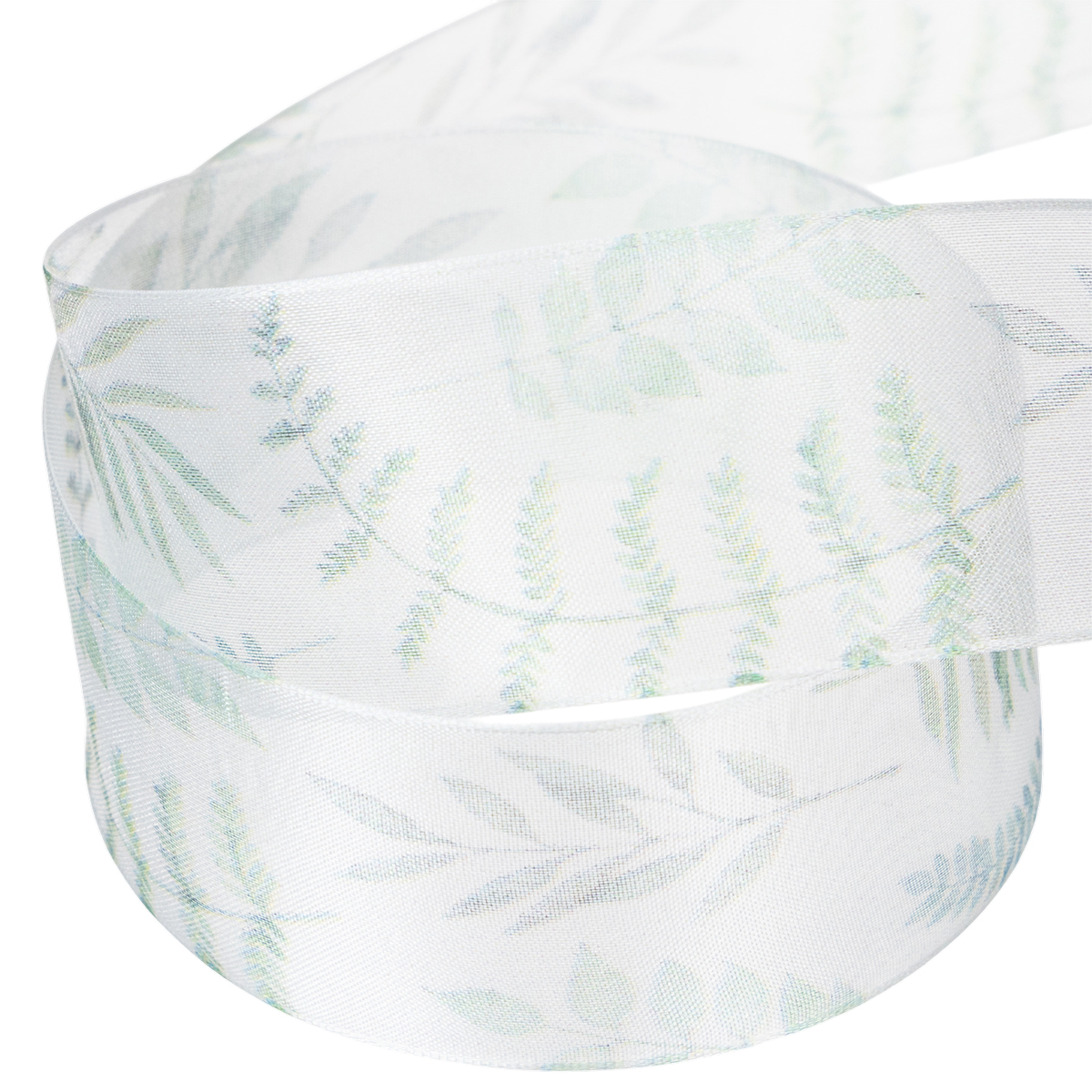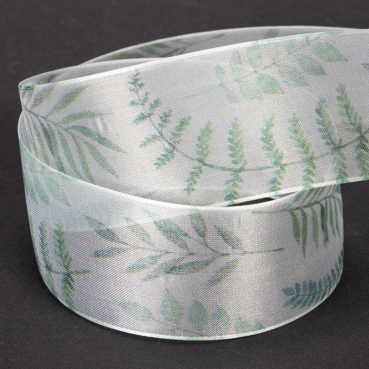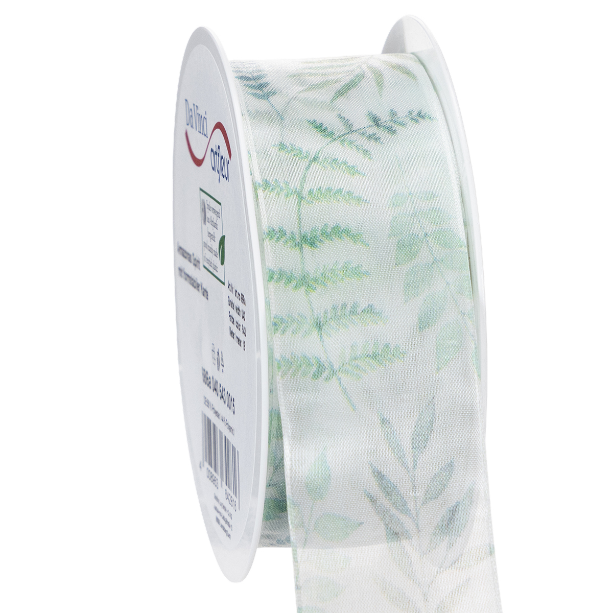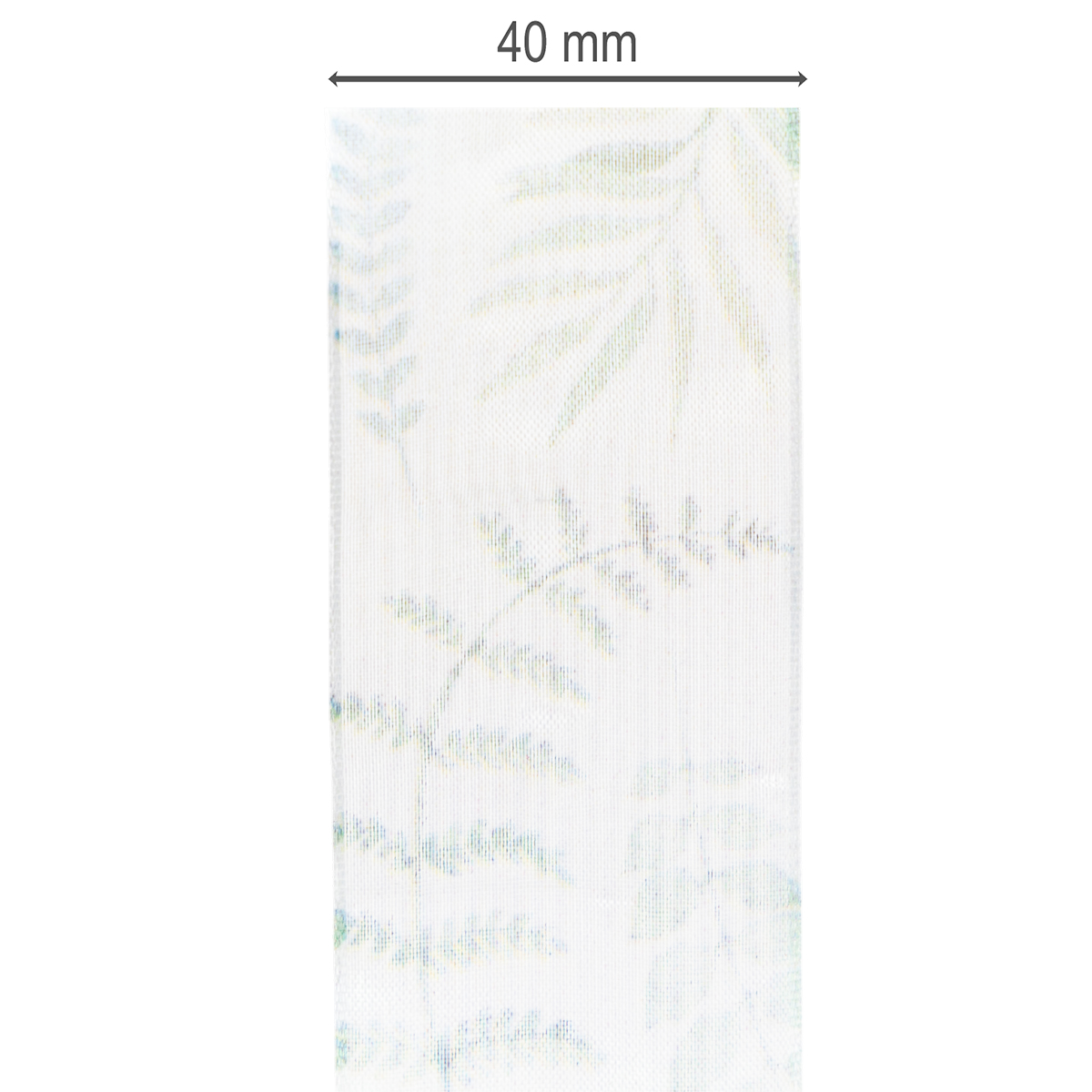 Ruban d'organza, ruban de mousseline, branches feuillues, vert, 40 mm, 15 m
