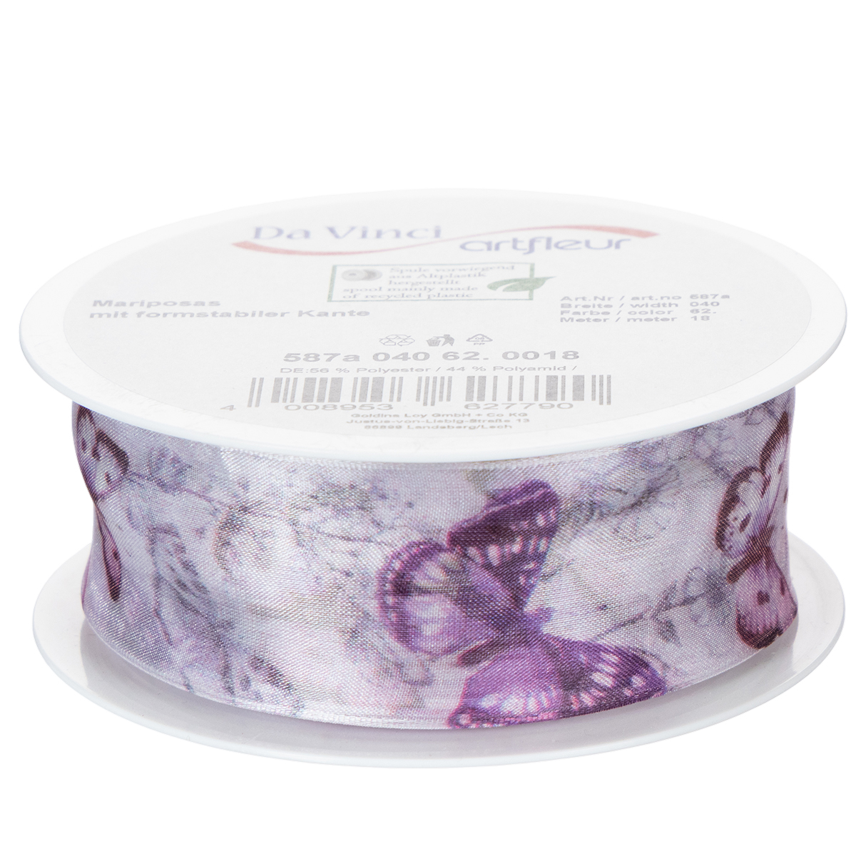 Nom du produit : Ruban d'organza, ruban de mousseline, papillons, violet, 40 mm, 18 m