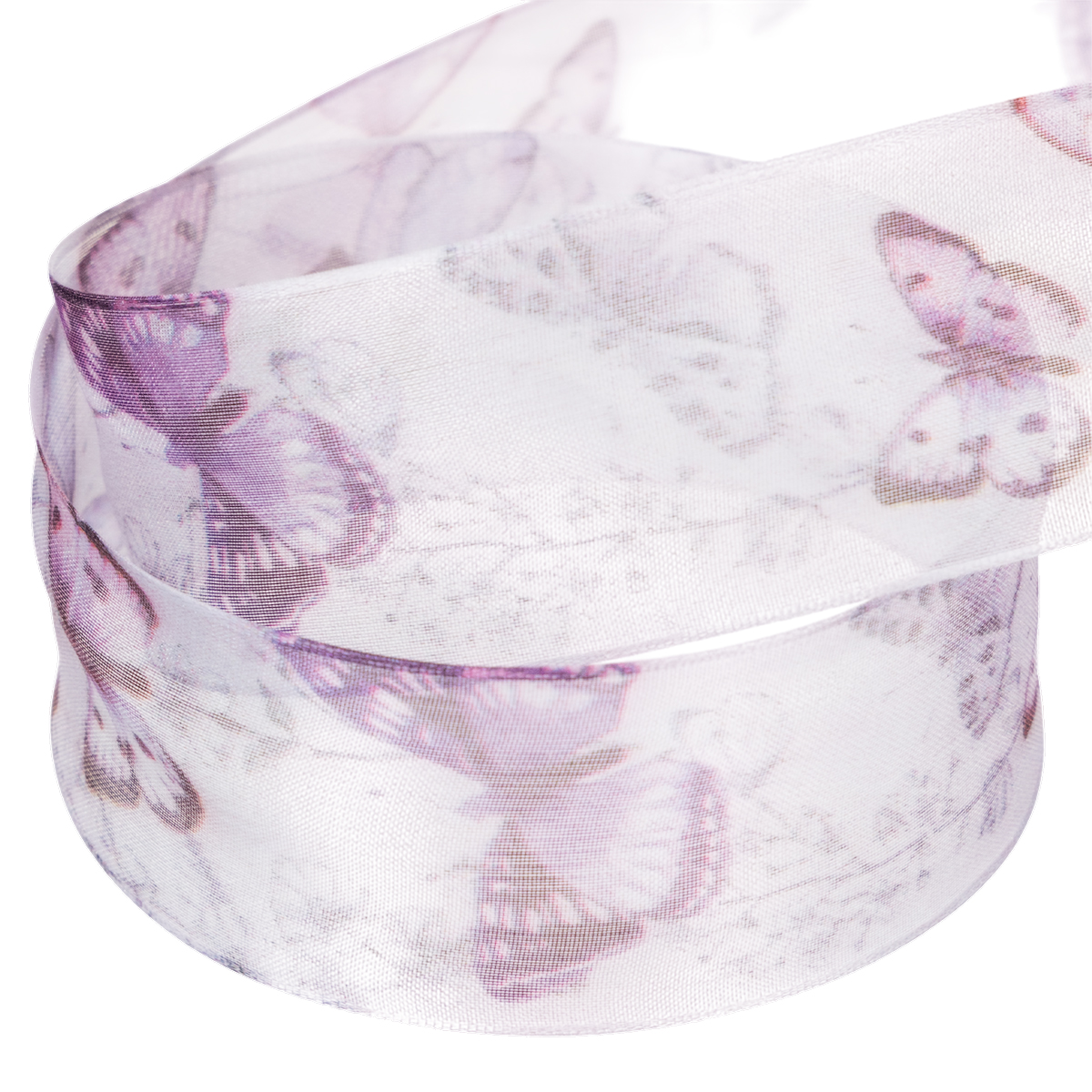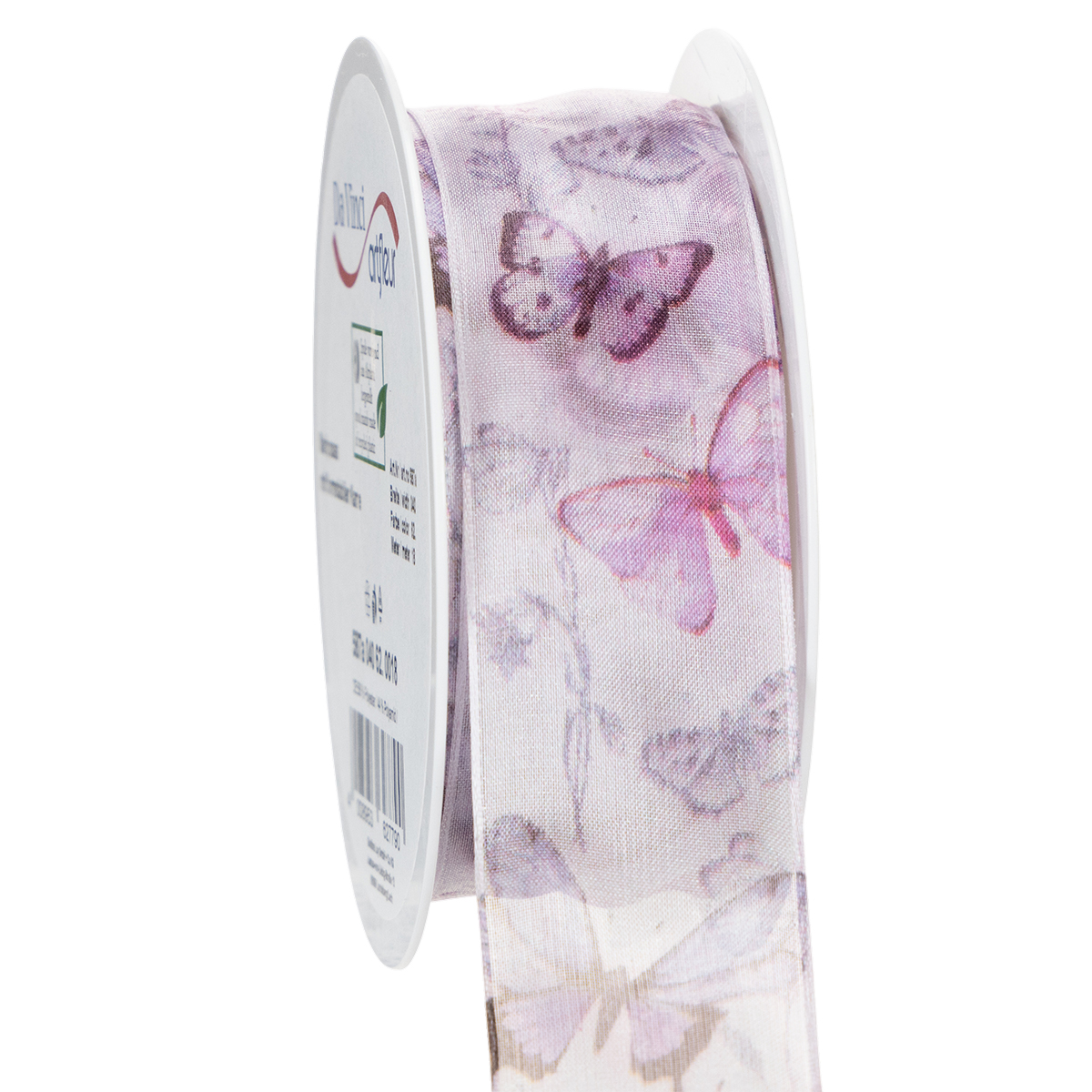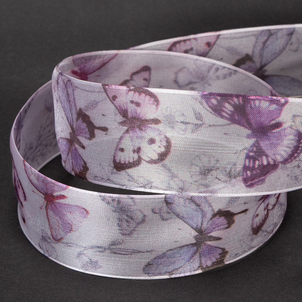Ruban d'organza, ruban de mousseline, papillons, violet, 40 mm, 18 m